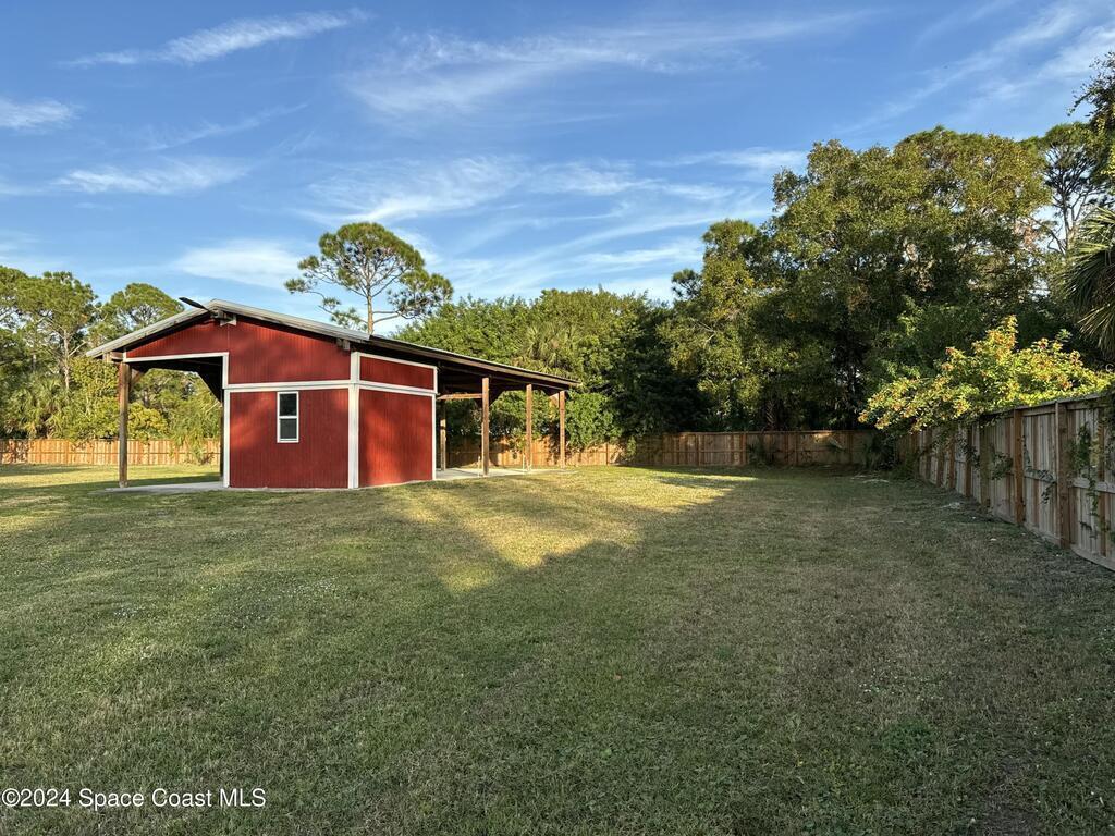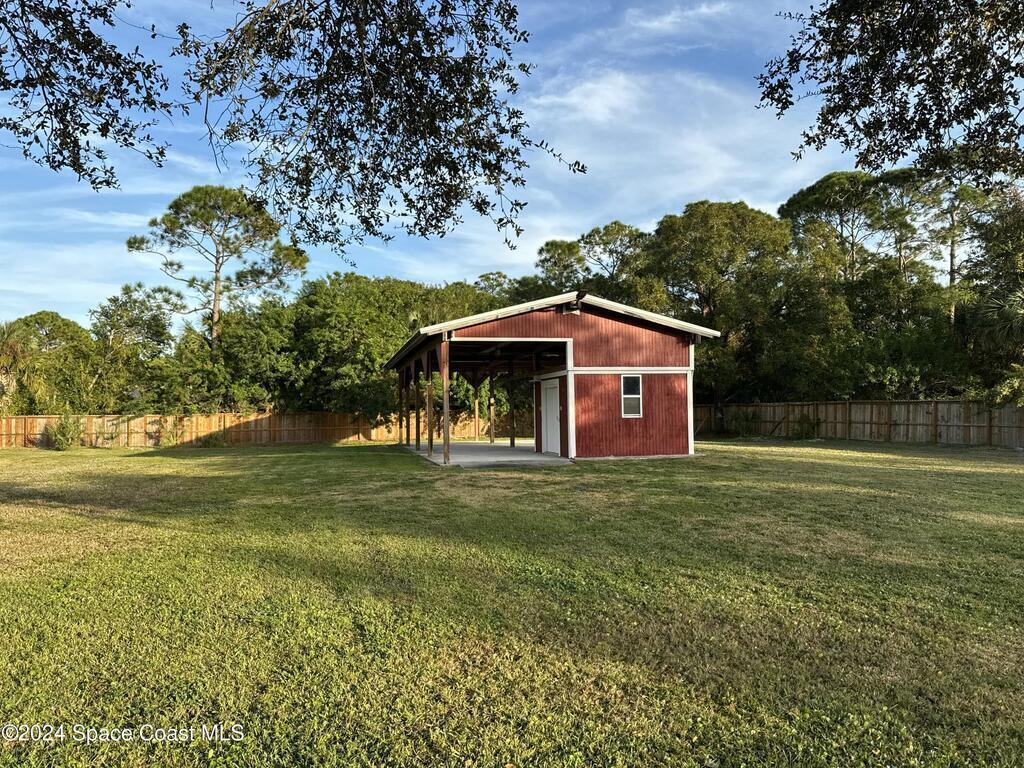 Welcome to your new beautiful turn key Malabar oasis. This house was completely remodeled from the ground up! Brand new floors, bathrooms, kitchen, baseboards, A/C unit, hot water heater, gutters, water softener system, septic flushed, garage opener, appliances, paint, fireplace, roof, fence and more! The land was completely cleared of majority of trees and debris. There is also a 1,200 SQFT covered barn that was just repainted that can be used for entertainment! You can enjoy the wonderful open 1.4 aces in privacy with the new 6ft wood fence! This house was used as a vacation home and is practically still entirely brand new! The roof was replaced in 2022. Cameras on the whole house, Nest thermostat, Nest door lock, Nest doorbell and new front door & impact sliding door. A lot of money was put into this house. You're completely worry free about needing to do anything on this property.