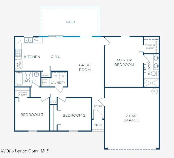 Under Construction. Welcome to Palm Bay! This vibrant community offers sunny weather, beautiful parks, and access to the stunning Indian River--perfect for relaxation and outdoor adventure.Step into this thoughtfully designed 3-bedroom home, where style and functionality come together seamlessly. The split-bedroom layout ensures privacy, with two bedrooms at the front and the owner's suite tucked away at the back, featuring a walk-in closet, dual vanity, and walk-in shower. The secondary bath includes a shower/tub combo, ideal for family and guests.The open-concept kitchen flows into the dining nook and great room, creating a warm and inviting space. It features modern stainless steel appliances--including a dishwasher, microwave, refrigerator, laundry package and range. LED flush-mount lighting enhances the bright, welcoming ambiance, while a walk-in pantry and laundry room add convenience.