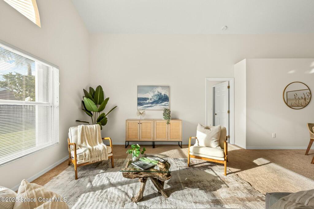 Check out this Merritt Island home in an incredible location! BRAND NEW ROOF! This home's 12.5' vaulted ceilings add the perfect touch to an incredible split-plan, open concept layout. The master bedroom is very spacious and includes a walk-in closet with a double vanity bathroom. There is an extra living space with the fully enclosed, converted, under air room that can be used in multiple ways, including a possible 4th bedroom with outside access.. The kitchen layout is super functional with tons of room and a great eat-in nook by the windows. Step into a backyard space that is quiet and private, providing a tranquil space to get away from it all. And if you find yourself wanting to get away even further, you're only 15 minutes from the beach or approximately 45 minutes to Orlando. Make your appointment quickly and secure this amazing Copperfield neighborhood home!