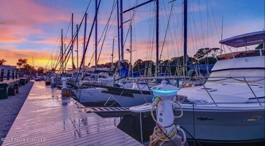 Welcome to Cape Crossing, Brevard's premier waterfront community, where luxury meets convenience. This stunning 3-bedroom, 2.5-bathroom townhome offers breathtaking marina views and a prime location just minutes from Kennedy Space Center, Port Canaveral, and the beaches. Fully furnished with coastal decor, this spacious retreat includes all utilities and WiFi, making it an effortless choice for short-term stays. Enjoy resort-style amenities, including a pool, hot tub, sauna, fitness center, and clubhouse, all designed for relaxation and recreation. Step outside to the community dock, perfect for watching dolphins swim by or experiencing spectacular rocket launches. For dining convenience, enjoy Dolphins, the on-site waterfront restaurant. Conveniently located just 10 minutes from Kennedy Space Center and Port Canaveral, with Orlando International Airport only 40 minutes away, this property offers the ideal blend of tranquility and accessibility.