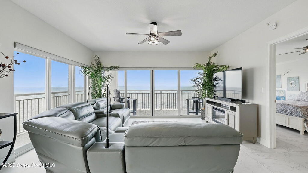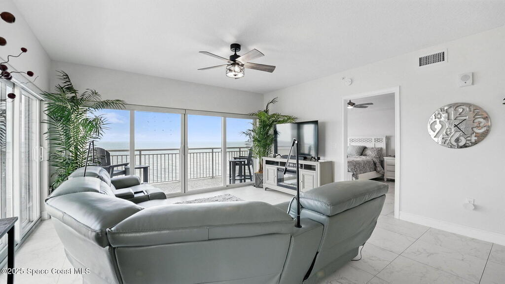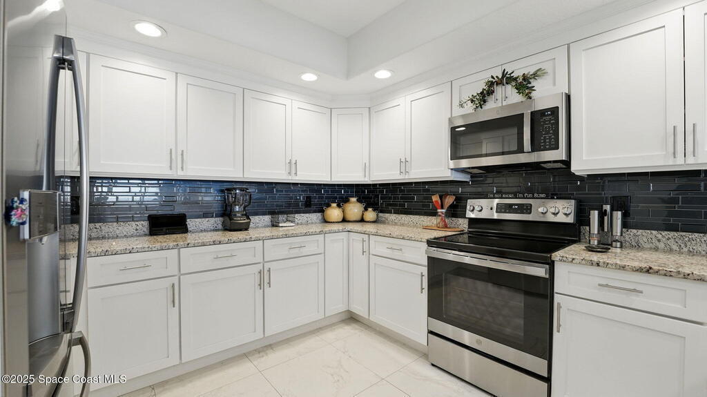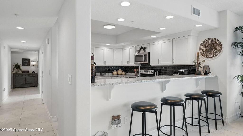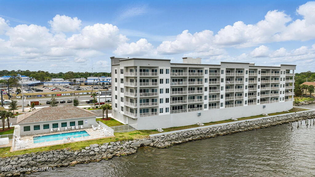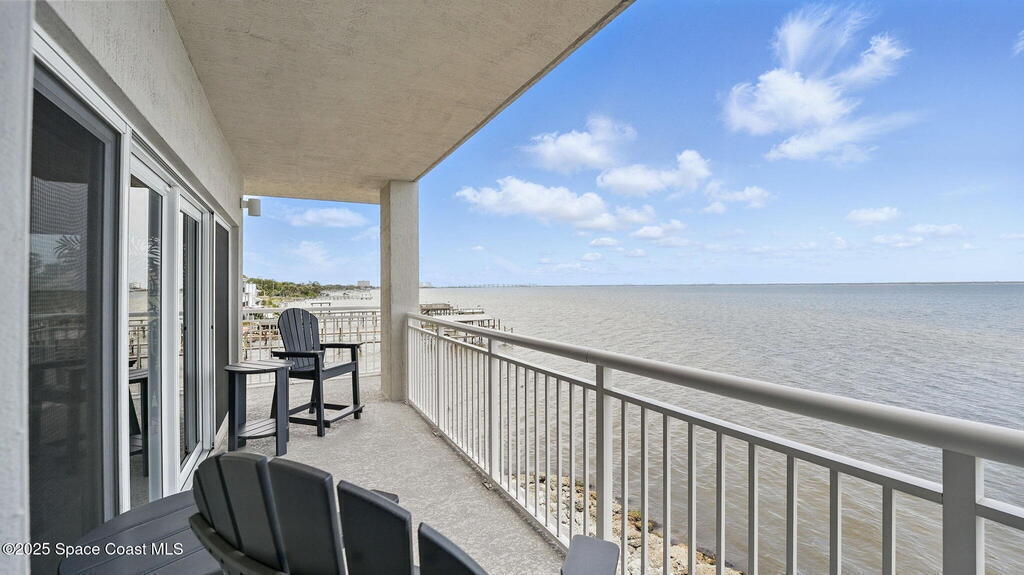 PRISTINE WATERFRONT VIEWS! This corner unit with unobstructed views to the east (Watch rocket launches from your private balcony) and north (Max Brewer Bridge) is MOVE IN READY. This spacious 3 bed-2 bath home has all available upgrades, including kitchen cabinets, granite counter tops, SS appliances, large laundry room with sink, and remote electric blinds throughout. Located in the heart of Titusville, it is a short drive to beautiful Playalinda Beach, Cocoa Beach, 40 minutes to Daytona Beach. Master suite offers His/Her closets, upgraded vanity and that glorious view. Enjoy a carefree and secure lifestyle with both reserved underground parking (a few feet from entry to elevator) and private entry garage with remote opener. Titusville offers coast to coast bike trails, lots of independent restaurants/shops and parks, only 40 miles to Orlando Airport, and just an hour to World-Famous Amusement Parks! Don't miss out on this highly desirable piece of paradise.