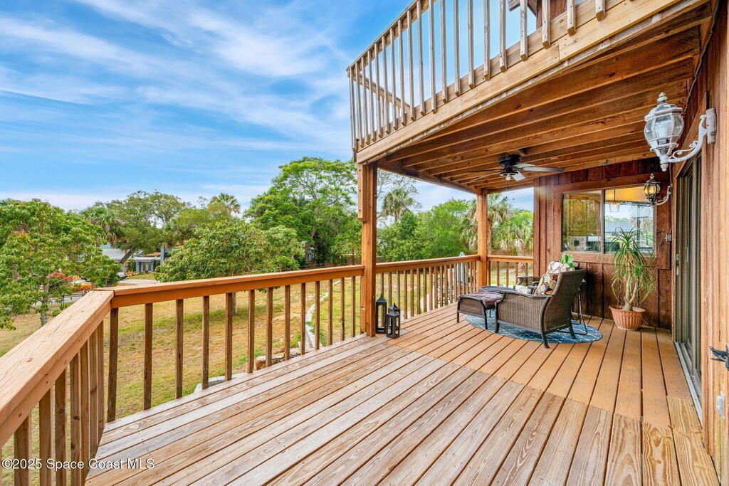 Assumable 2.375% VA $750,000 Mortgage . Tucked away on a full acre in the exclusive Still Water Subdivision of South Merritt Island, this custom cedar home offers rare privacy and natural beauty. Surrounded by towering oaks and set atop one of the island's highest elevations in the historic Georgianna area, the 3-level beautiful estate A fully remodeled kitchen adds modern style, while three wood-burning fireplaces bring warmth and charm. The layout includes a third-floor master retreat, two bedrooms and main living on the second level, and a private guest/in-law suite on the ground floor--ideal for multigenerational living. Soaring ceilings and rich wood details create a comfortable, inviting feel. Step outside to your private pool or enjoy Honeymoon Lake's community dock across the street with direct access to the Indian River. Just 15 minutes from the beach and close to the Cape, PAFB, and Melbourne--this one-of-a-kind estate blends space, seclusion, and timeless character