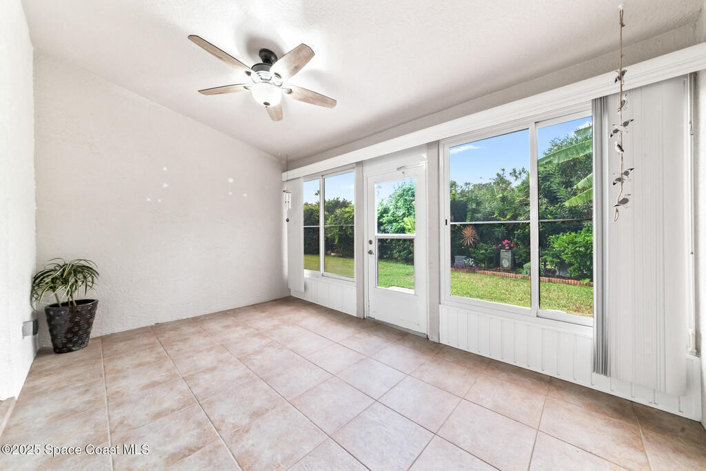 Step into comfort and convenience at 7701 Candlewick Dr, a beautifully cared-for end-unit home nestled in the gated community of Emerald Pointe in Suntree. This charming 3BDRM, 2BA residence offers over1,900sqft of living space with an open layout and vaulted ceilings.Natural light pours into the spacious living and dining areas, while sliding glass doors lead to a fully enclosed Florida room, ideal for year-round enjoyment. The primary suite includes a generous walk-in closet, dual sinks, a relaxing garden tub and a separate walk-in shower. Recent updates throughout the home, including sleek flooring, new epoxy garage floors, modern lighting, upgraded fixtures, & new AC! Enjoy added privacy with the corner lot and lush landscaping, plus extras like plantation shutters, a garage screen, and a metal roof for long-term peace of mind. Located just minutes from beaches, parks, golf, and local shopping and dining!