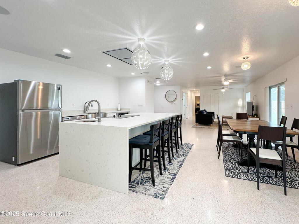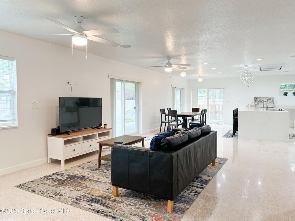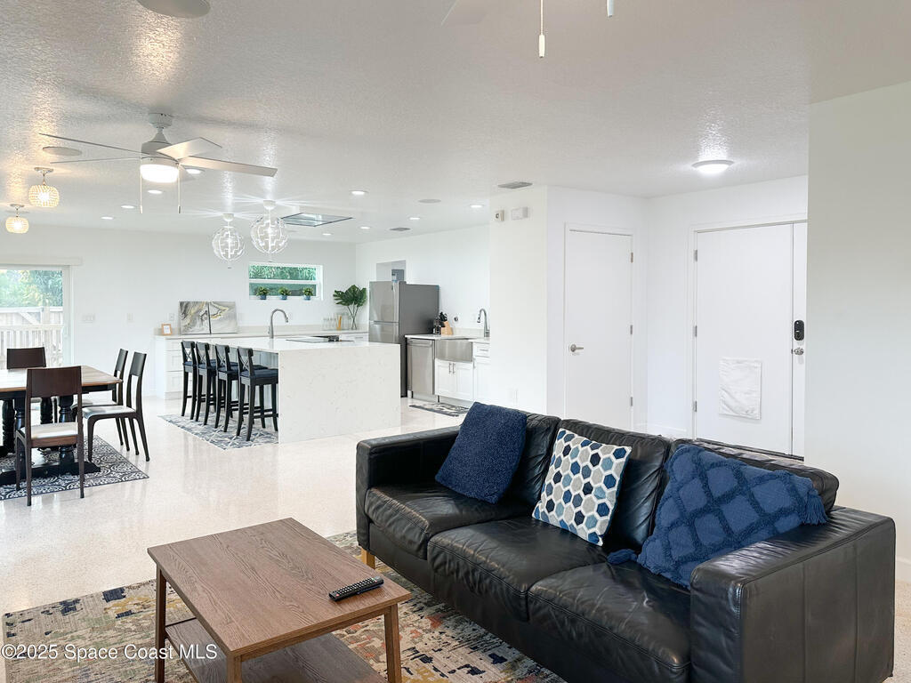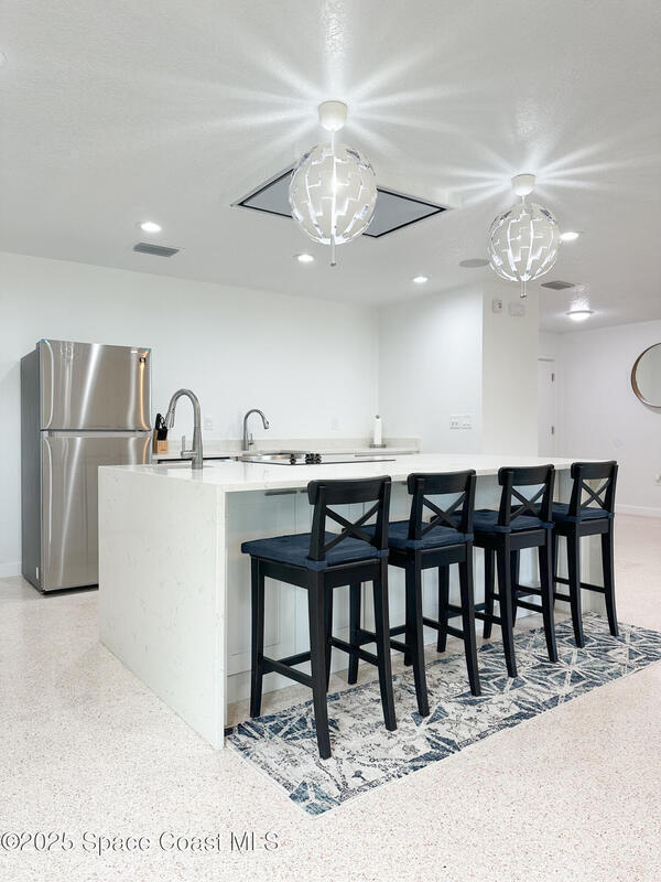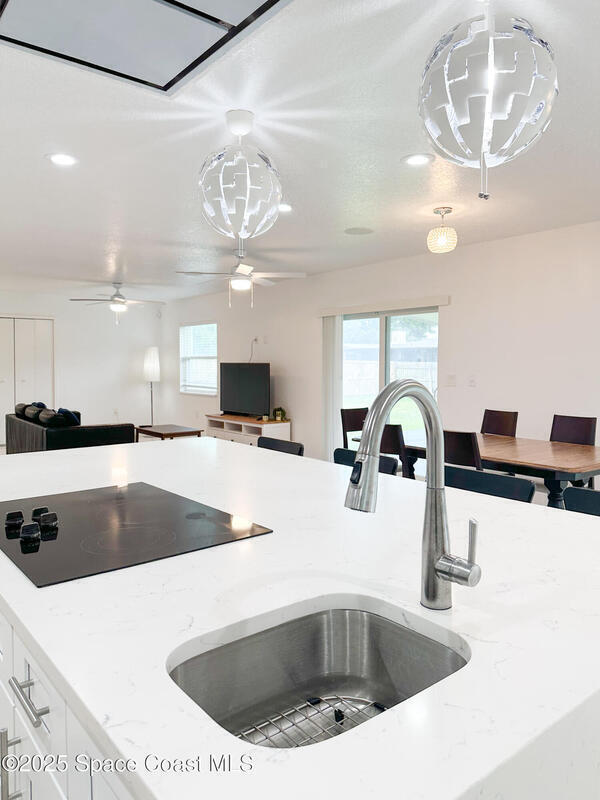 Situated just minutes to the beach, this meticulously renovated home offers a perfect blend of modern living and hurricane resilience. Stripped down to the concrete block and trusses with all new interior framing, roof (2022) with double roof straps, new gutters, exterior stucco and paint, electrical, full HVAC system upgrade with new registers, ducts and returns, hurricane rated fence, new windows and sliding glass doors. Fully re-plumbed with new piping, a larger flow rate potable water line, a new artesian well and water pump to provide abundant water supply for the smart sprinkler system for efficient lawn care. A redesigned floor plan with walls removed to create an open floor plan, expanded entryway, oversized laundry room that could be converted to a bedroom. Brand new kitchen with quartz countertops, custom cabinetry, all new smart appliances, a voice activated faucet, ethernet ports throughout the home. Refinished terrazzo floors, large backyard with room for a pool and more!