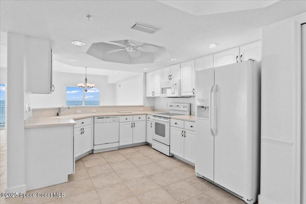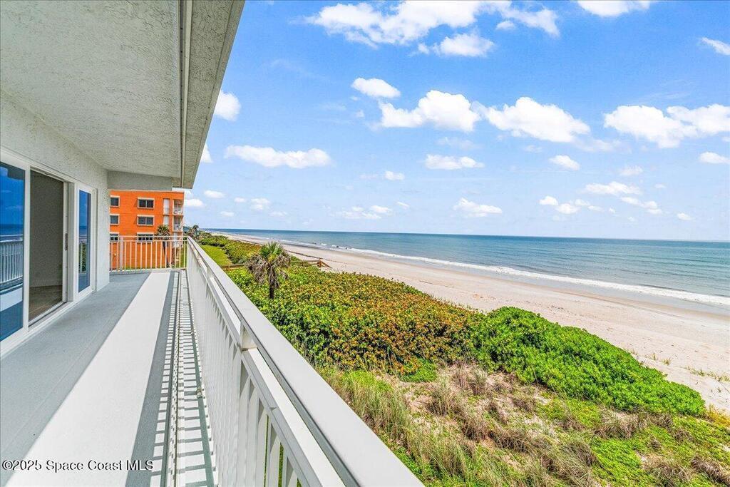 Experience elevated coastal living in this exquisite, northeast corner residenceat Serena Shores, nestled in the prestigious enclave of Indian Harbour Beach. Revel in sweeping, unobstructed views of the Atlantic and enjoy spectacular rocket launches, passing cruise ships and the unique beauty of nesting turtle tracks, all from the privacy of your expansive, wrap-around balcony. This oceanfront community offers direct beach access and a resort-style pool and spa, heated year-round. Inside, a light-filled open layout showcases 3 spacious bedrooms, each with its own ensuite bath, and 2350 sq ft of elegant living space. Enjoy peace of mind with impact sliders, storm shutters, and abundant storage, including generous walk-in closets. A rare private deeded 2-car garage adds to the exclusivity, with additional parking available. Serena Shores boasts impeccable structural integrity and no pending assessments. Don't miss this rare opportunity to own a slice of oceanfront luxury!