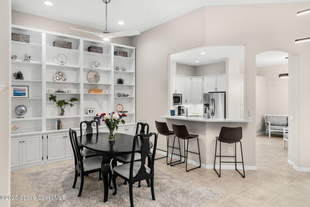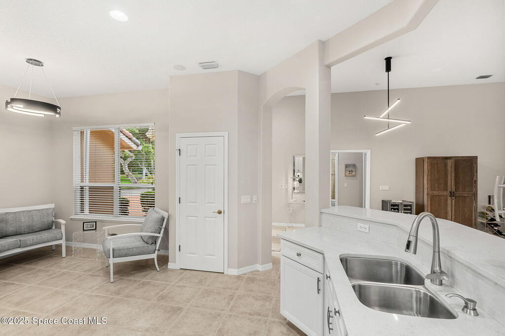 Welcome to your slice of paradise in the prestigious Aquarina community, where luxury meets leisure on Florida's scenic Space Coast. Overlooking the 11th fairway, this 3-bed, 2.5-bath pool home offers elegance, comfort, and resort-style living. Thoughtfully updated interior featuring a modern kitchen with quartz countertops, stainless steel appliances. The open-concept living area flows seamlessly to the outdoors, where sliding glass doors frame views of your private, heated pool and the lush fairway beyond. The primary suite also enjoys tranquil poolside vistas, creating a serene retreat to start and end your day. Meticulously maintained and upgraded for peace of mind, including: Brand new tile roof, Hurricane protection on all openings, New water heater, 2022 AC system and lawn and landscaping included!!