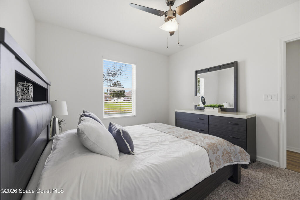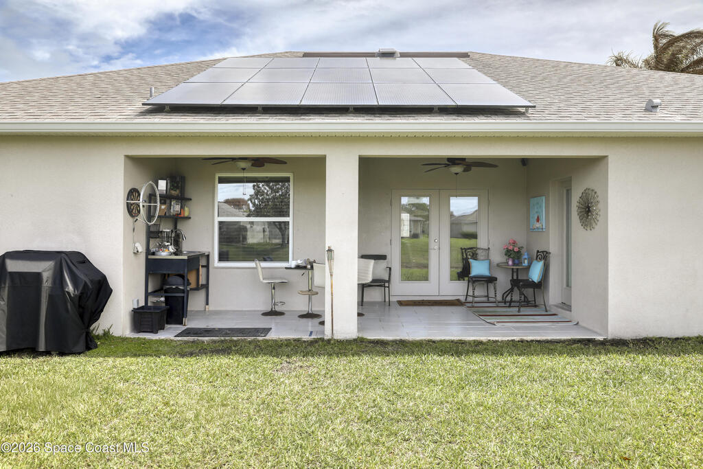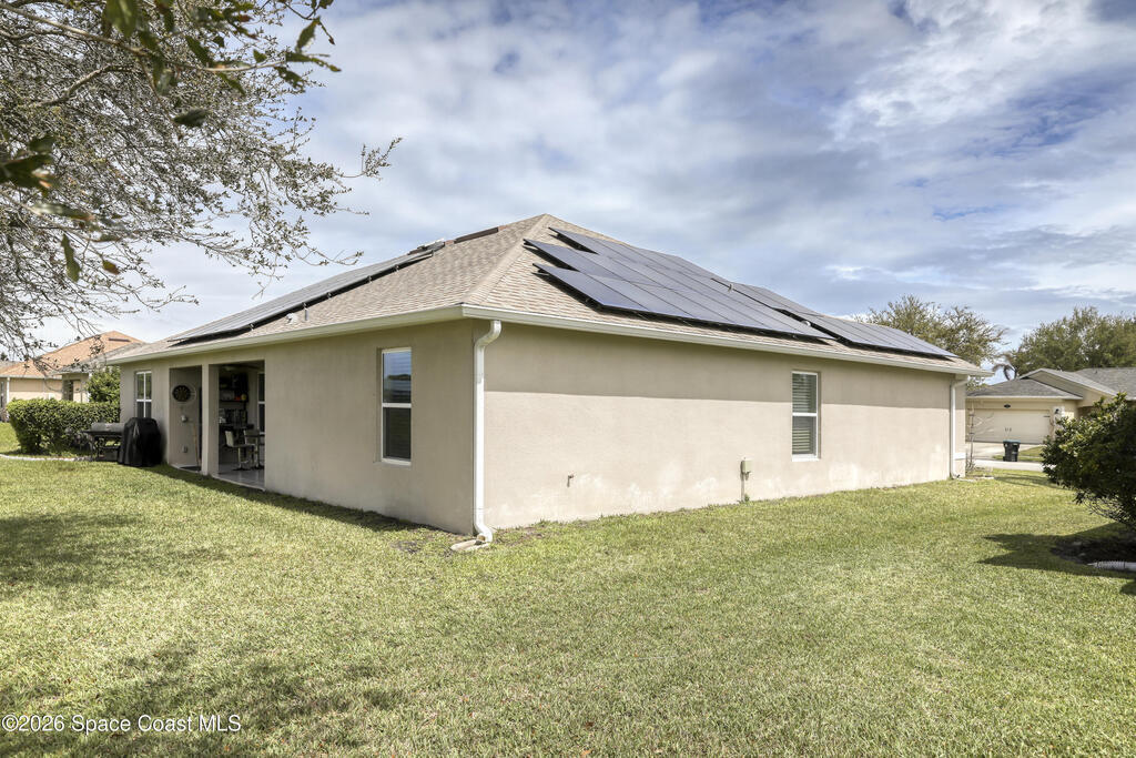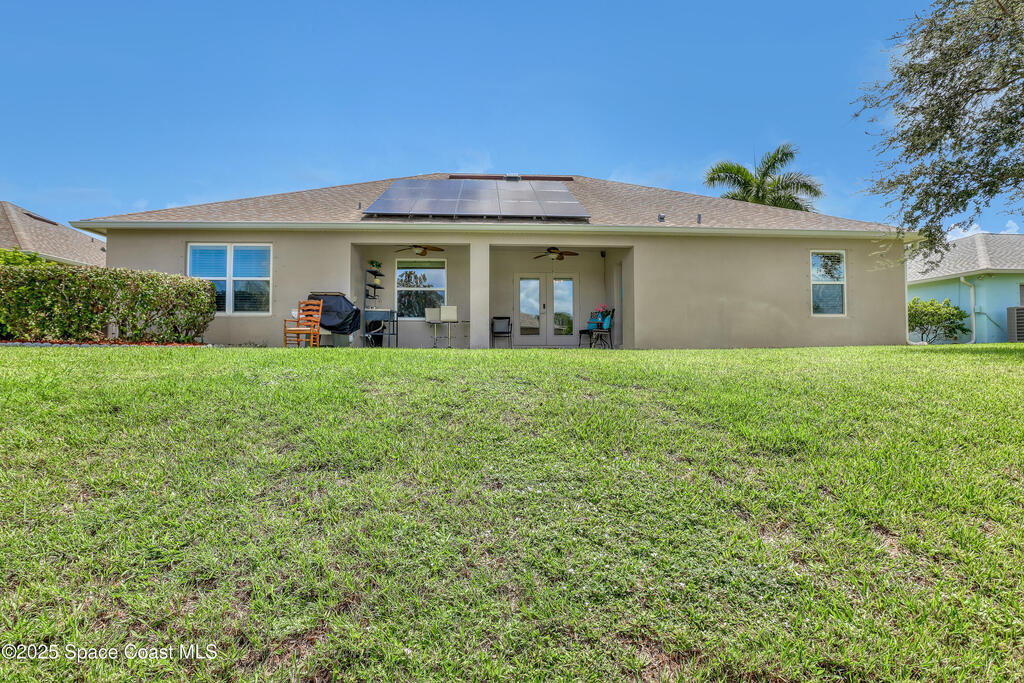 Sustainable, Stylish, and Move-In Ready -- a Rare Find!This fully furnished 5-bed, 3-bath home offers 2,365 sq ft of beautifully designed living space, an open-concept layout, and a highly desirable split floor plan.The left wing features four bedrooms arranged in two private pairs, each with a shared full bath--perfect for multigenerational living&guests.The private primary suite includes a spacious en-suite bath and walk-in closet. A chef's kitchen flows seamlessly into the living and dining areas, ideal for gatherings and entertaining.Natural light fills the home, creating a bright, airy atmosphere throughout. Glass French doors open to a peaceful pond view with no rear neighbors, offering serene outdoor living.Save Big with Solar--Turnkey Living with Furnishings Included.Enjoy an average FPL bill of just $30/month thanks to energy-efficient solar panels and a hybrid water heater. Perfectly centrally located, offering quick access to I-95, major retailers, and local restaurants.