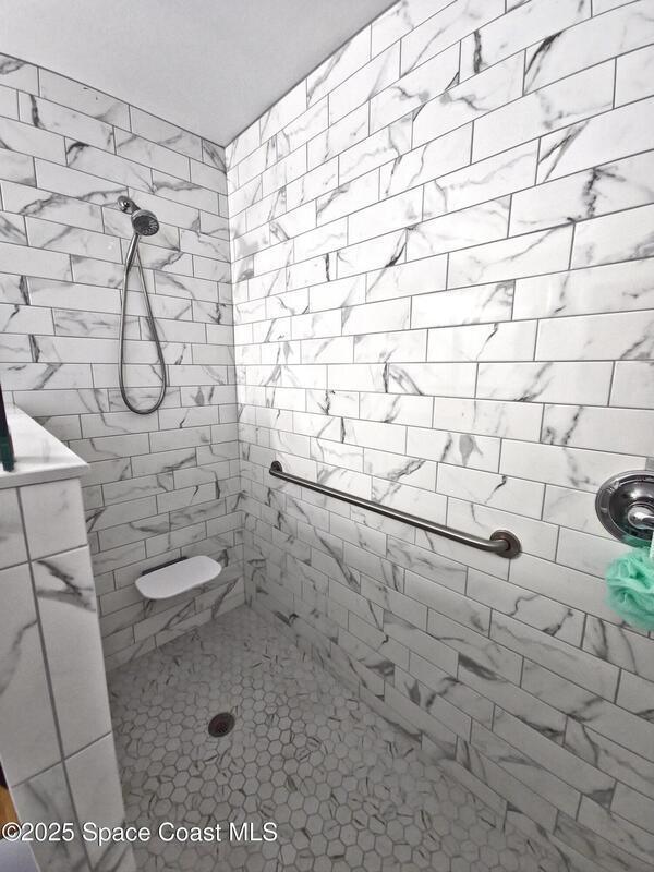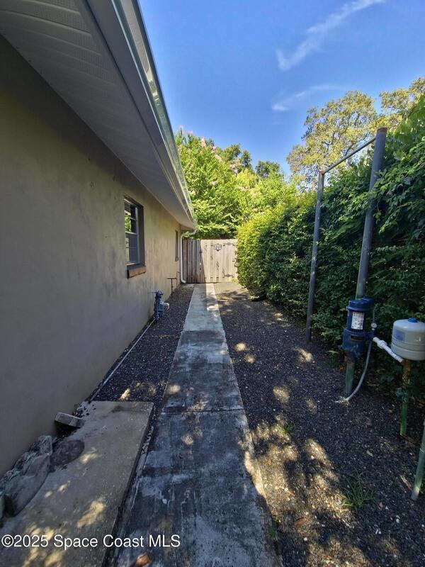 Opportunity knocks in the heart of Titusville! This home is priced to sell, so time is of the essence! This is your chance to own a structurally sound, concrete block home with an open floor plan! UPGRADES - Brand new roof and gutters, new HVAC system, electrical upgraded, new plumbing including drain lines, supply lines, and fixtures, both bathrooms completely renovated with modern tile, fixtures, and finishes and fully renovated laundry room. Primary bedroom is also upgraded. There is an additional large family room space that has a separate mini-split AC unit. Large, beautiful back yard with mature trees, a 285 square foot outbuilding that is currently used as a fun space with pool table. There is a 2019 gas hot water heater. Washer and dryer included. Additional room off garage that would make a nice shop with lots of pegboard! Custom privacy fence around back yard. There is a well with a sprinkler system. Most of the big-ticket Items have been taken care of.