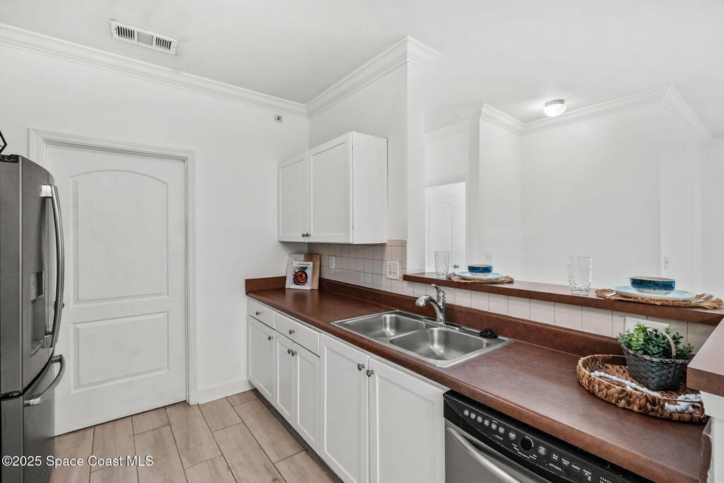 Welcome to this 2 bedroom, 2 bathroom third-floor condo offering 1,157 square feet of contemporary living space with beautiful lake views. This well-appointed end unit features stylish plank-look tile flooring throughout and impact-resistant windows for added peace of mind.The kitchen includes a stainless steel dishwasher and refrigerator, washer and dryer also convey and the AC system was replaced in 2019.Located in a gated community packed with amenities, residents have access to:A lakeside gazebo with outdoor kitchen and grillsA putting green for golf enthusiastsLawn and exterior maintenanceInternet and cable, included in the HOAAccess to the clubhouse, gym, community pool, spa, and trash removal services