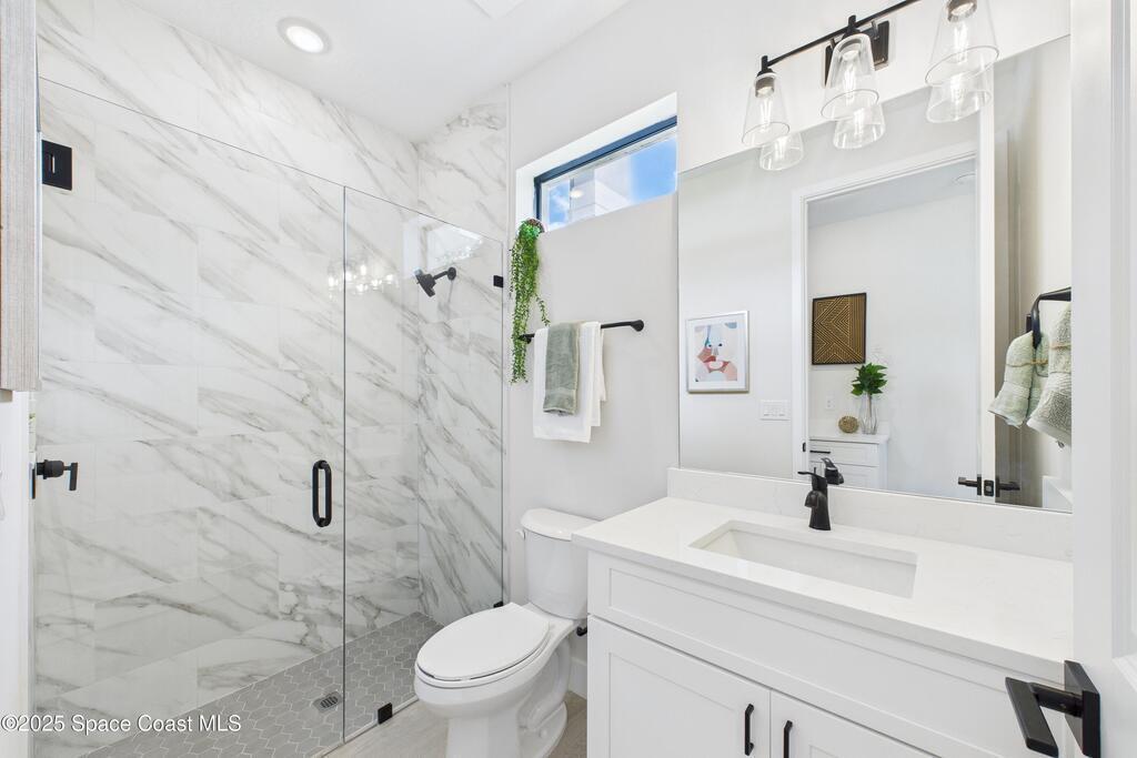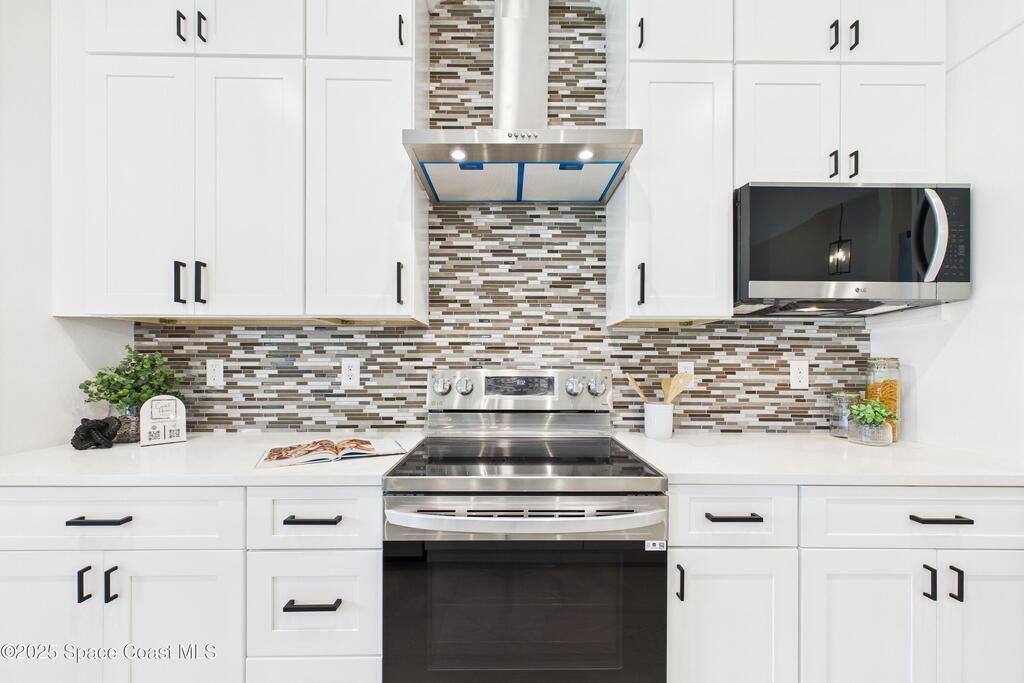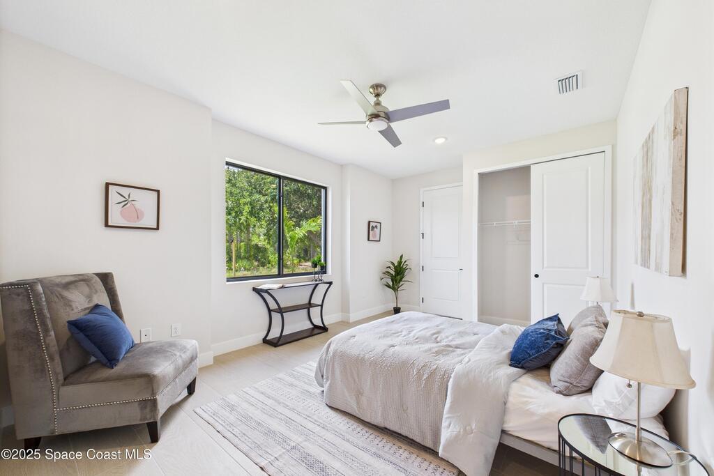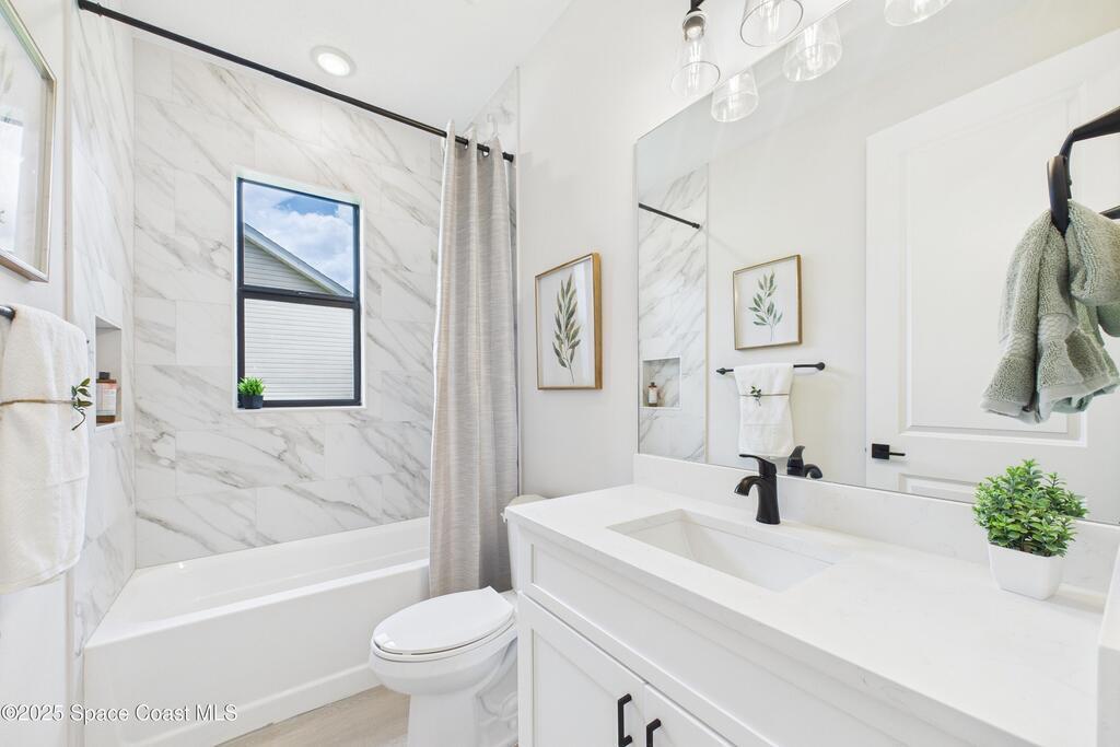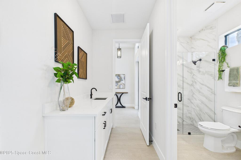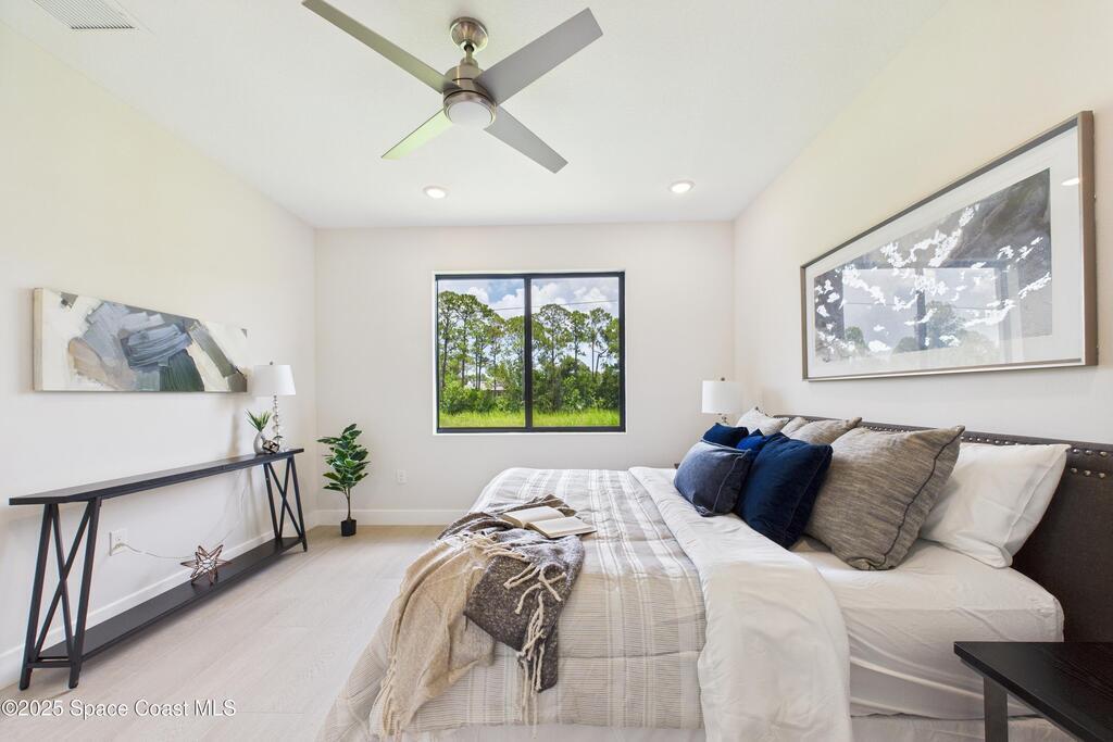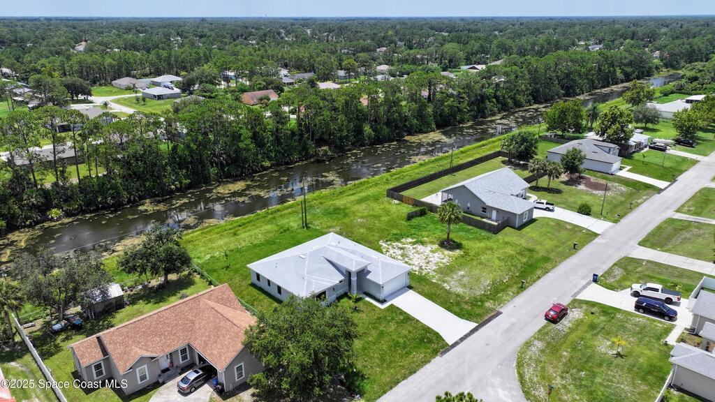 SELLER OFFERING $10K IN CONCESSIONS and an upgraded appliance package including washer and dryer. This home is perfect for multigenerational living, featuring a separate entry and private bathroom en suite, ensuring both privacy and comfort. Discover modern luxury living in Palm Bay's desirable Bayside area, close to shopping, dining, and more. This new build features 4 bedrooms, 3 full baths, and 2,108 sq ft under air. The sleek kitchen boasts a 9'x4' granite island with dual waterfall edges, Stainless steel appliances, and custom soft-close cabinets. The open floor plan flows into the dining and living areas, perfect for entertaining. 9.4' ceilings and elegant porcelain tile flooring (no carpet or vinyl) add a spacious feel. The primary suite includes double sinks, a tub, a walk-in shower, and a walk-in closet. Enjoy a covered rear patio with outdoor kitchen utilities ready. This home also includes a 2-car garage, 1-year builder warranty, and 10-year structural warranty.