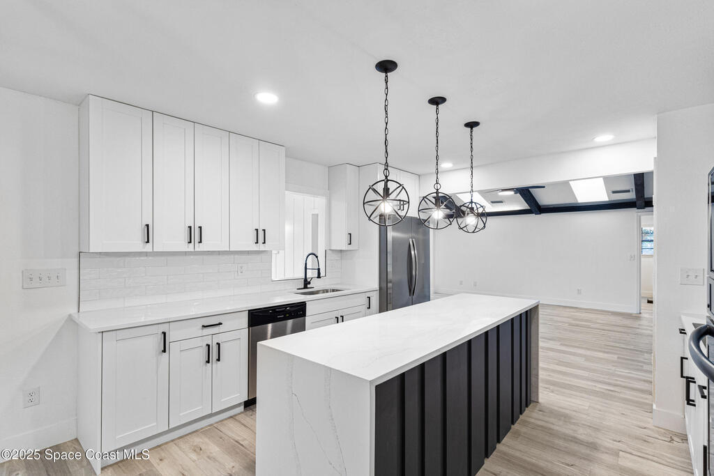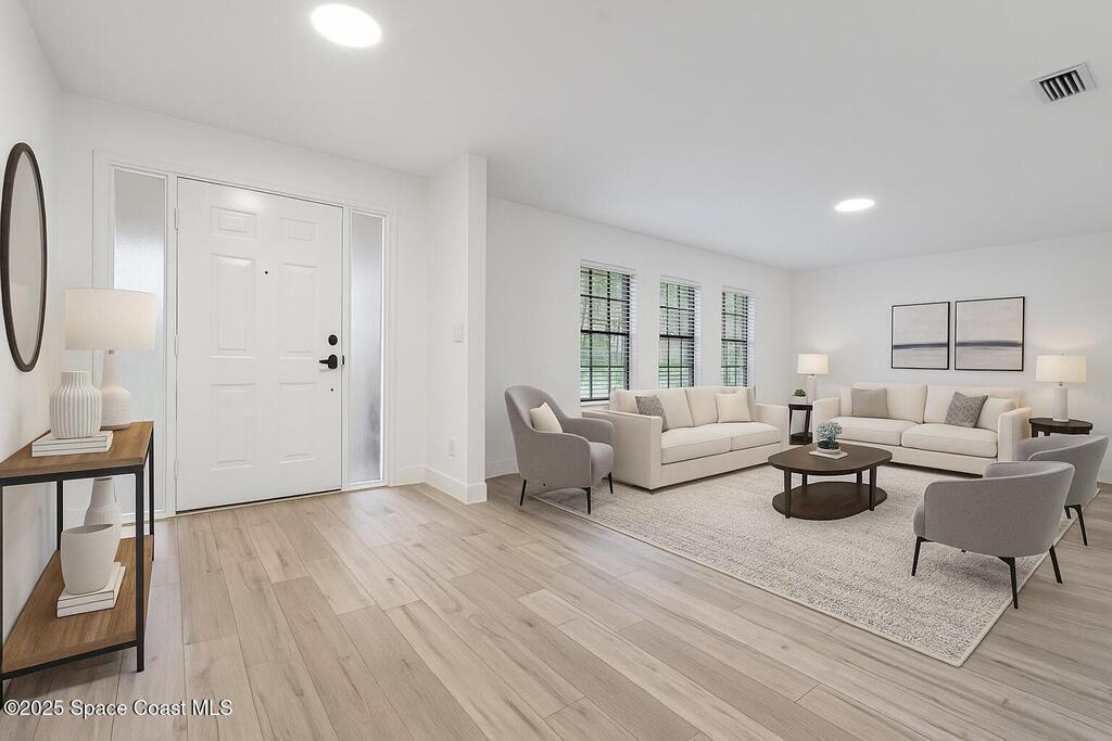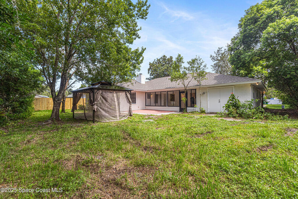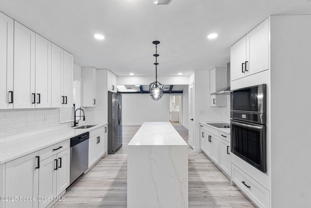 PRICE IMPROVEMENT! This home truly checks all the boxes! ✅ New roof, AC, and water heater--big-ticket items done for your peace of mind. Fresh flooring and paint throughout mean low maintenance for years. The brand-new kitchen features top-of-the-line stainless steel appliances, quartz countertops, 42'' soft-close cabinets, and a large island perfect for cooking and entertaining. Bright, open living areas are filled with natural light from abundant windows and skylights. The split floor plan offers privacy with a spacious primary suite featuring double sinks, a water closet, and a glass-enclosed rain shower. Outside, enjoy a two-car garage, attached workshop with water and electric, a brick-paved patio, and a beautiful gazebo--all on a quarter-acre lot. . NO HOA! Don't miss this fully remodeled Space Coast gem at an incredible value! Come see!