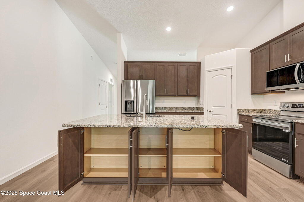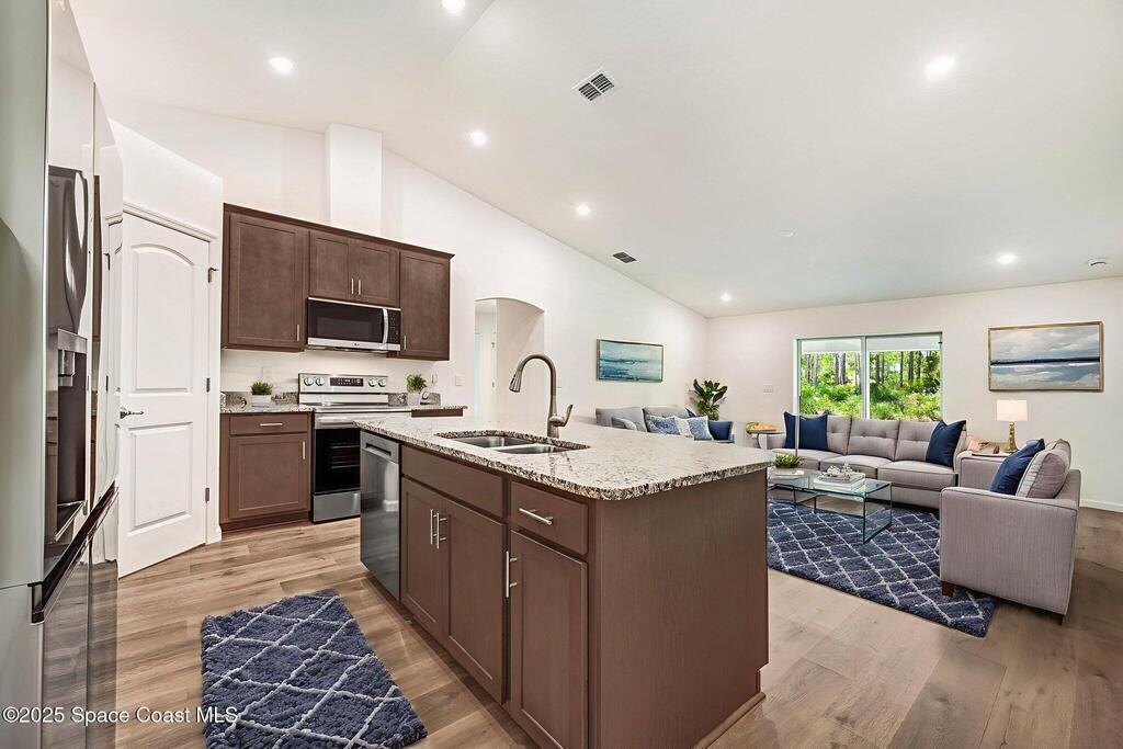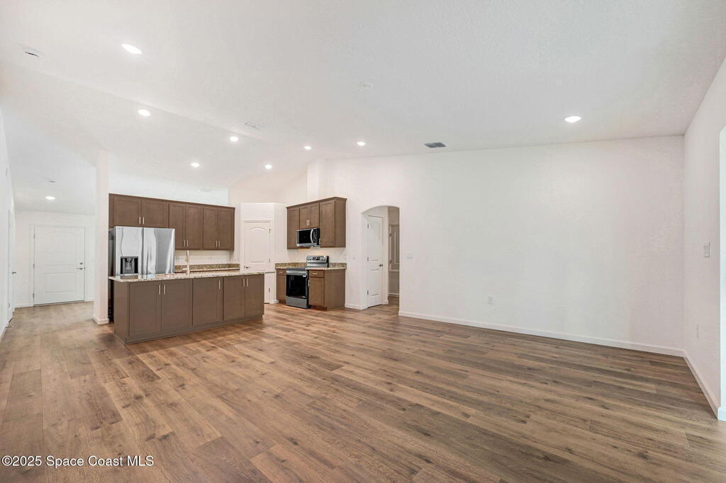 Beautiful Brand-New 4BR/3BA Family Home with Room for Everyone! This spacious home includes a 2-car garage & a large 20x12 trussed covered screened porch--perfect for playtime or relaxing outdoors. The open-concept island kitchen features granite countertops & ample cabinets with crown molding along with stainless appliances (including a 25 cu. ft. fridge) plus corner pantry. Durable Mohawk Revwood plank flooring flows throughout with tile in baths & laundry. The 4th bedroom has its own private bath with a 5' tile shower--great for guests or family! The primary suite offers a tray ceiling with dimmable lighting, a huge walk-in closet, and a tiled 5' shower. Inside laundry has 5'of overhead cabinets. 1-year Builder/10yr structural warranty. Extras: full water treatment system, attic stairs, floodlights, rounded drywall corners, and energy-saving R-38 insulation with radiant barrier. Limited-time: $15K Flex Funds or reduced 30-year rate with preferred lender for qualified buyers!
