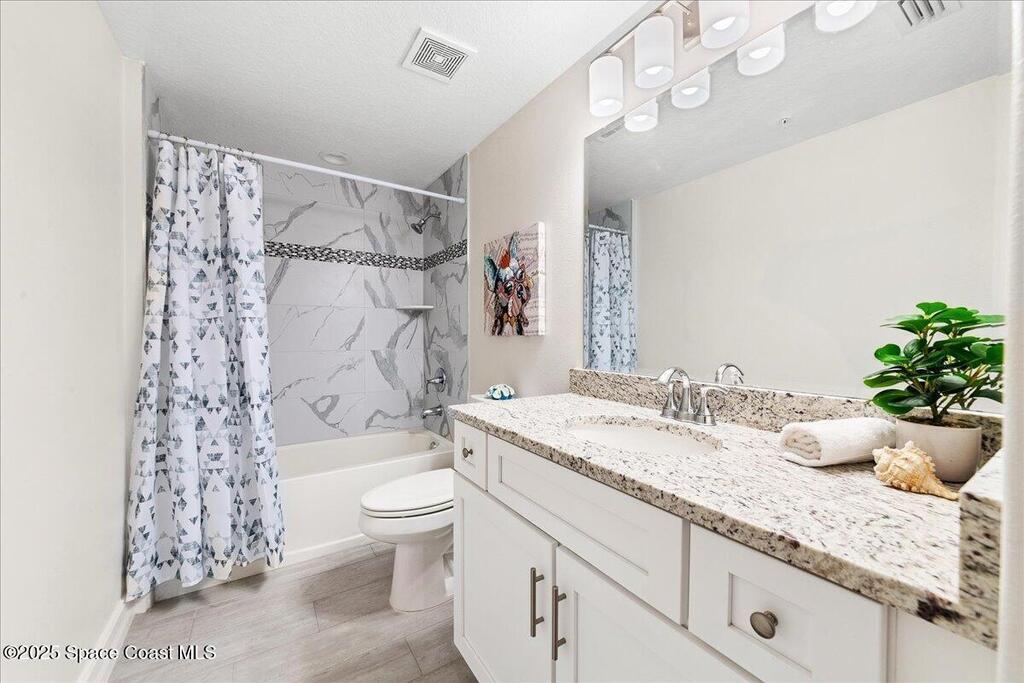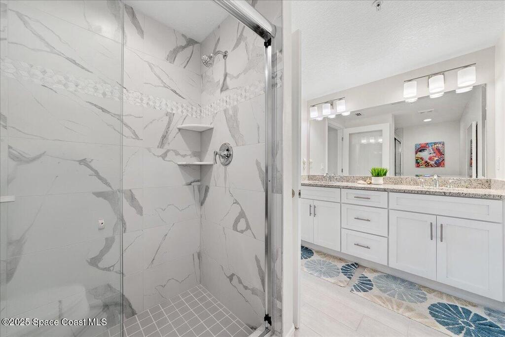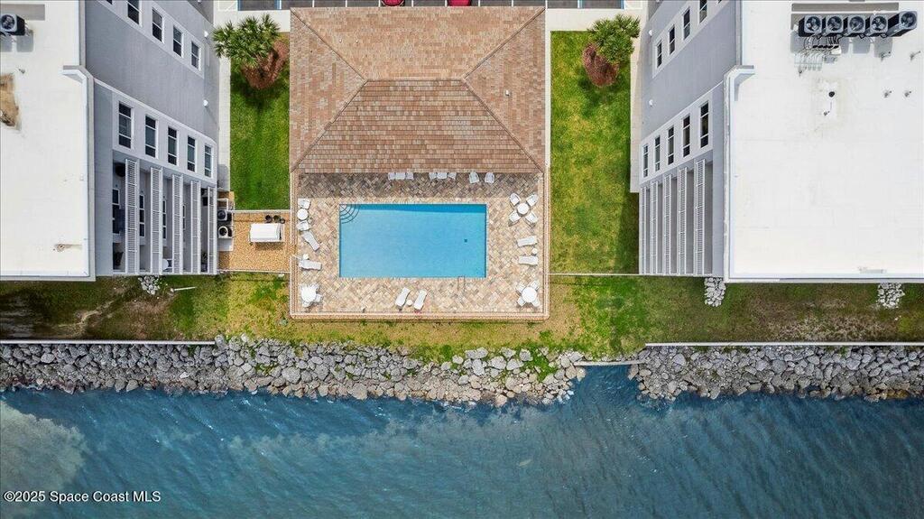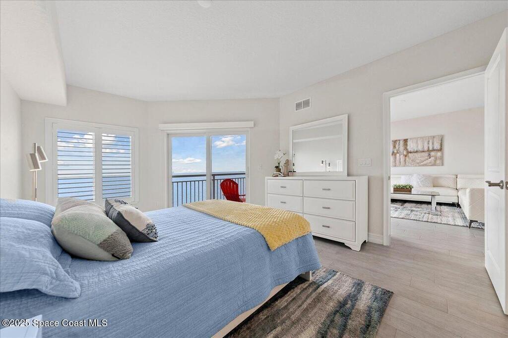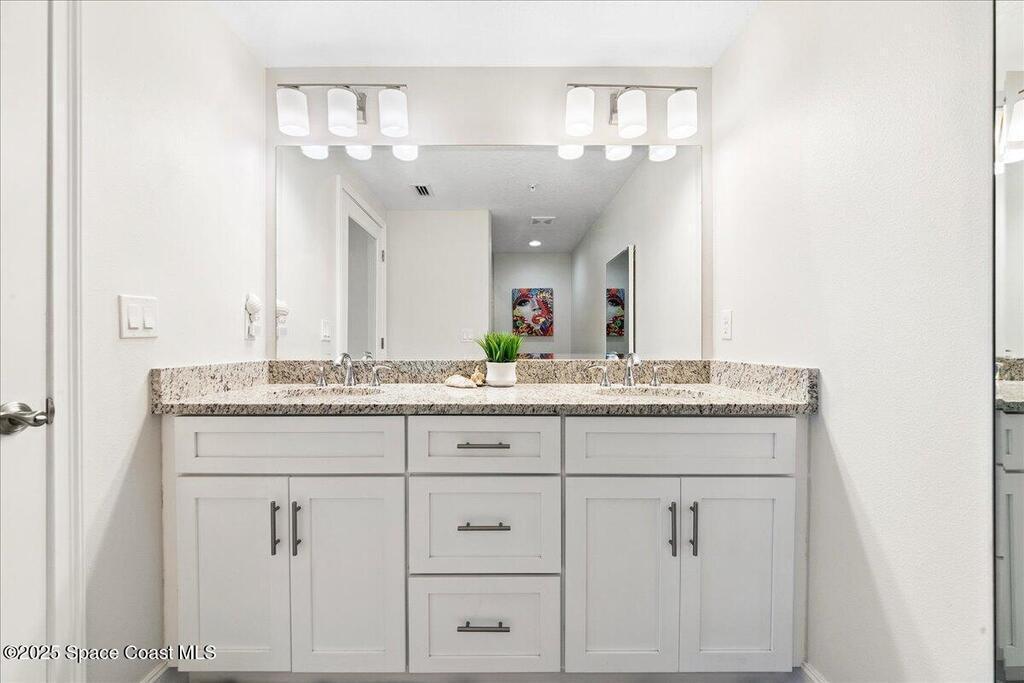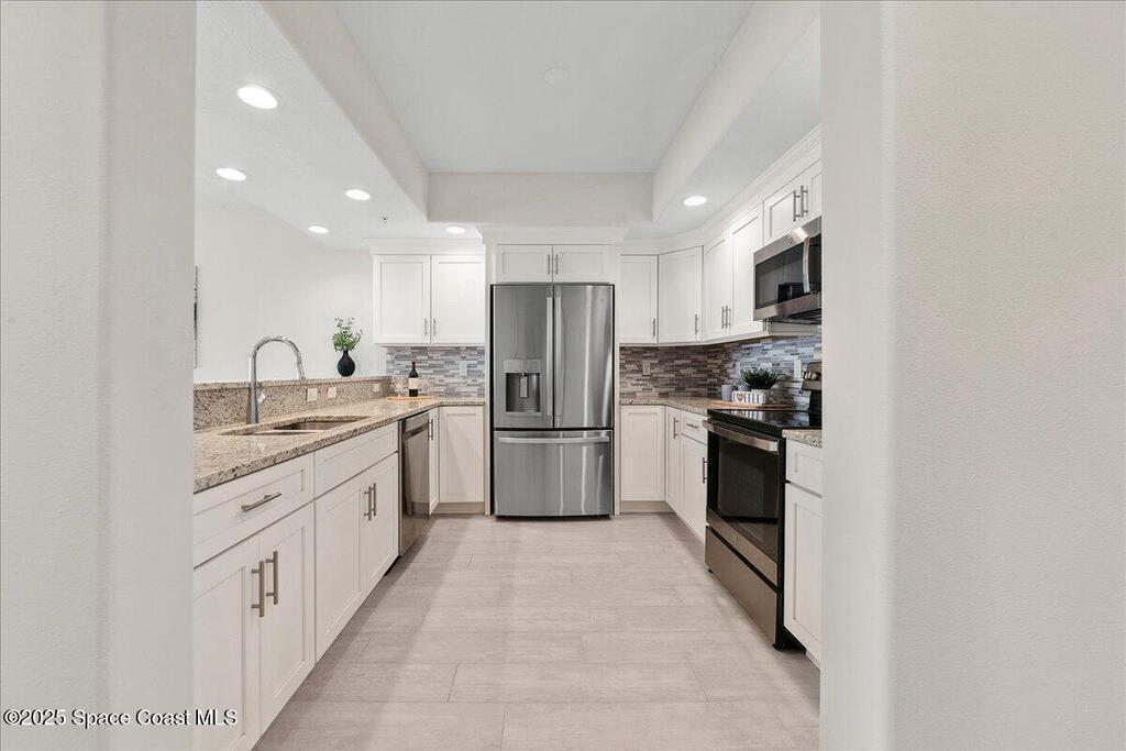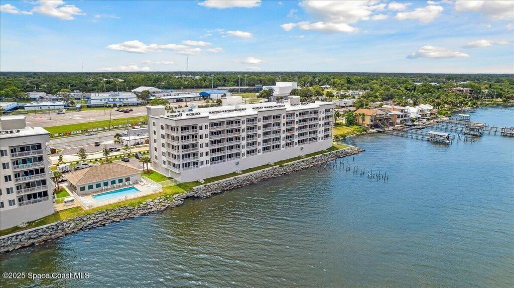 Waterfront living at its finest! Welcome to coastal luxury living in this beautifully designed condo nestled along the scenic Indian River in Titusville, FL! Built in 2023, this modern residence offers breathtaking water views, stylish finishes, & low-maintenance living-all year round & just minutes from Kennedy space Center, beaches, & marinas. Step inside to find a bright, open concept floor plan w/ high ceilings & abundant natural light. The contemporary kitchen features sleek shaker cabinetry, stainless steel appliances, granite countertops, tile backsplash and a bar height kitchen island perfect for entertaining. Light tile floors throughout enhances the coastal aesthetic & offers effortless upkeep. The primary suite offers private river views, a large walk-in closet, a spacious ensuite w/ double vanities & a walk-in tiled shower. Unlike others, this model has the primary suite RIVERSIDE w/ its own slider to the balcony, while the guest bedroom is located on the road side,