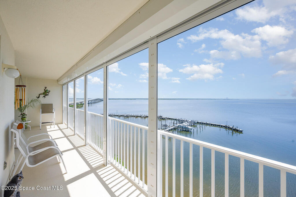Florida SPACE COAST living at its finest! This condo sits in the PERFECT LOCATION has amazing riverfront views, in a private setting off main roads and within walking distance to downtown. This two bedroom two bath condo is truly turn key, This condo is professionaly decorated and comes FULLY FURNISHED, BUYERS CAN MOVE RIGHT IN! High end comforts in every room, newer appliances in kitchen and laundry rooms (2024), AC w/ infrared system (2024), silhouette shades in primary bedroom and living room adds elegance & privacy. Guest bedroom set up as an office but easily converts to a guest bedroom with modern built in Murphy Bed, spacious closets through out the unit for storage, separate laundry room with utility sink plus a private one car garage. Gated entrances, heated saltwater pool, hot tub, gym, dry sauna, tennis, and pickleball courts, clubhouse, private marina and social activities. Enjoy the next rocket launch from the BEST LOCATION your new condo