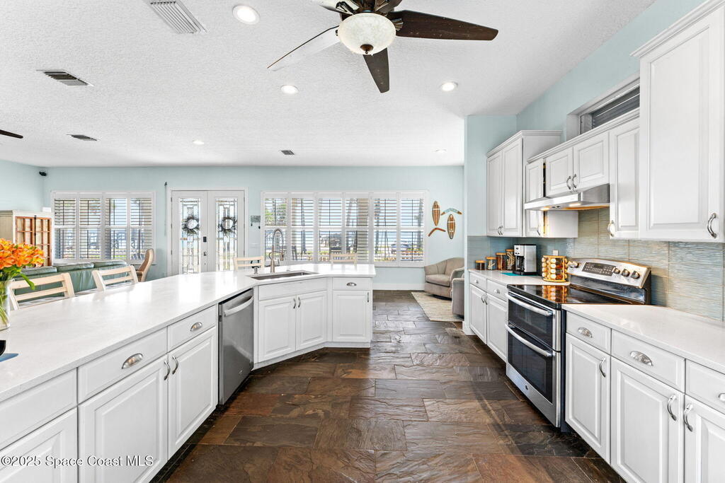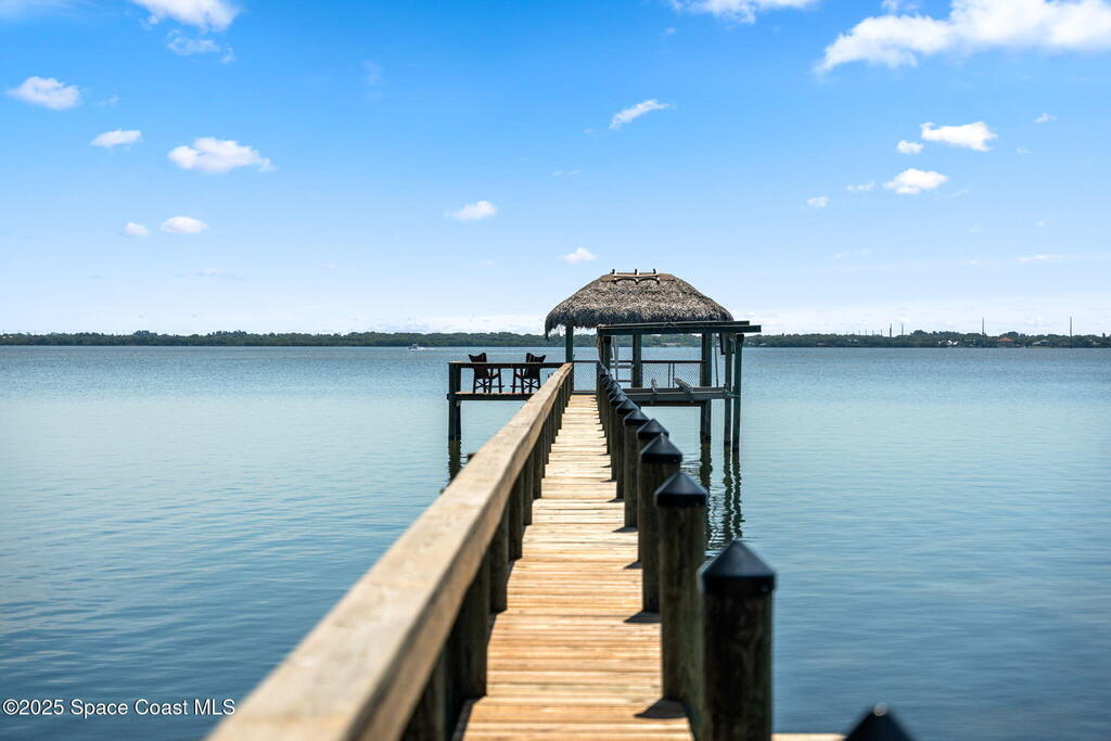 Paradise found on the Intracoastal Waterway! This extraordinary (handicap accessible) home checks all the boxes with a beautiful solar-heated pool (w/handicap lift), outside shower, poolside pergola with paver patio, expansive front porch with cedar ceiling and plantation shutters where you can soak up the river views featuring regular rocket launches and dolphins. The front-of-house primary offers beautiful river views, built-in California Closets(r), dual walk-in closets and a spa-like ensuite bath with soaking tub, larger shower and 2 sink vanity. The property features an attached 2 car attached garage, detached greenhouse and luxurious detached newer 885 SF guest house w/kitchen, screened sitting porch (with river views), RV power outlet and additional parking in the back. The riverside has a newer dock w/boat lift and TIKI hut. Even the dining area and beautiful quartz kitchen offers river views. This home is extraordinary on a larger lot on sought after Indian River Drive