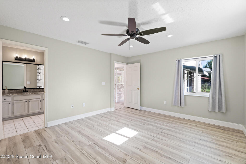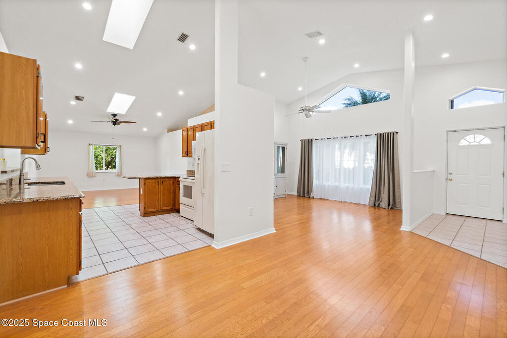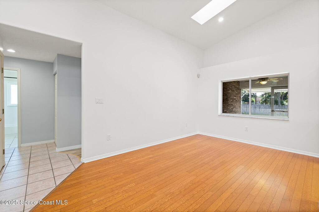 Welcome to this meticulously maintained 4-bedroom, 2-bath home with NO HOA and exceptional pride of ownership! Featuring a light-filled kitchen with granite countertops, wood cabinetry, and newer appliances. Both bathrooms are tastefully renovated with granite vanities and tiled showers. Enjoy two spacious living areas, perfect for entertaining or relaxing with family. Skylights and new LED recessed lighting brighten every corner, complemented by brand new carpet and luxury vinyl plank flooring. Major upgrades include a new AC unit (2020) and impact-rated windows (2018). Step outside to a screened-in porch overlooking a large backyard, ideal for BBQs, hobbies, or adding a pool. No neighbor on one side, thanks to an adjacent empty lot, offering added privacy. Oversized 2-car garage provides ample storage. Conveniently located near I-95 and the Beachline for quick access to beaches, the airport, and Orlando attractions. Move-in ready and packed with value!
