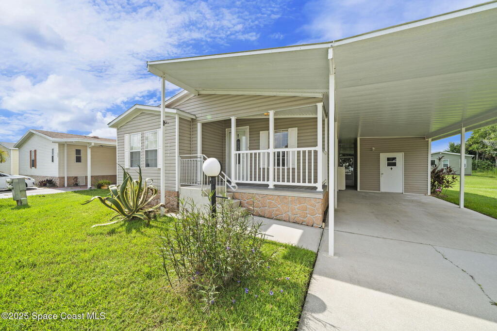 Welcome to this bright and airy 3-bedroom, 2-bath home in Cedar Lakes Mobile Home Park Co-Op! Located in a peaceful, all-ages, resident-owned community in West Cocoa, this well-maintained home offers comfort, convenience, and value. The split-bedroom layout features open living spaces, a spacious kitchen, and a screened porch ideal for relaxing. The primary suite includes a walk-in closet, soaking tub, separate shower, and dual vanities. Enjoy updates including roof (2018), A/C (2019) with new capacitor and blower motor (2025), water heater (2021), washer & dryer (2022), dishwasher and kitchen faucet (2025), and electrical panel with surge protector (2024). Community amenities include a heated pool, clubhouse, shuffleboard, fishing lake, and secured RV/boat storage. The low HOA covers lawn care, cable, internet, and pest control--relaxed Florida living at an unbeatable value!