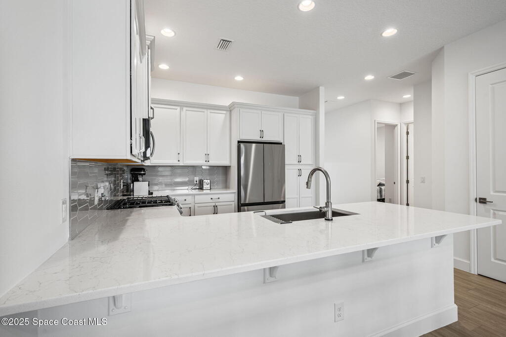 ***Updated Price***Modern Comfort Meets Effortless Living! This beautifully upgraded 3/2 townhome offers the perfect blend of contemporary style & low-maintenance convenience. BUILT IN 2024, this one-story home feat. bright, open-concept layout w/high ceilings, neutral finishes, & spacious living area that opens to covered lanai & extended paver patio--perfect for relaxing/entertaining. Stylish kitchen incl. quartz countertops, reverse osmosis, SS appliances, gas range, & large island w/bar seating. The primary suite has a generous walk-in closet & sleek bathroom w/dual vanities & tiled walk-in shower. Two additional bedrooms provide flex space for family, guests, or home office. Other features incl. 2-car garage, indoor laundry ,energy-efficient construction & professional landscaping. SEE UPGRADES LIST! Located in the heart of Viera, you'll enjoy easy access to shopping, dining, A-rated schools, golf, and beach. HOA covers exterior maint. for true lock-and-leave convenience!