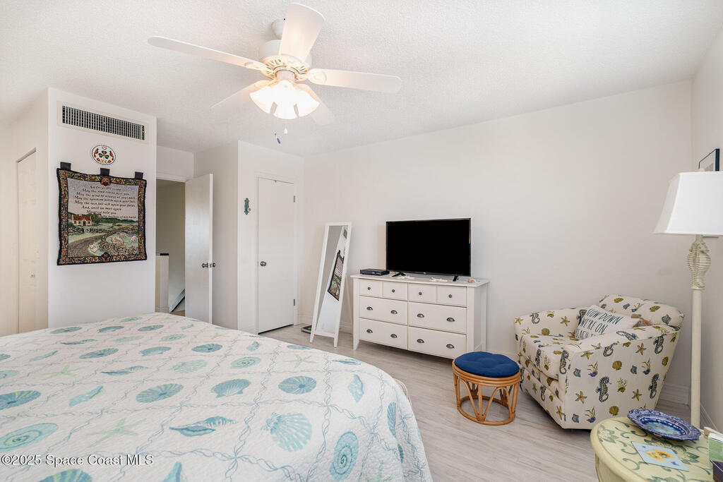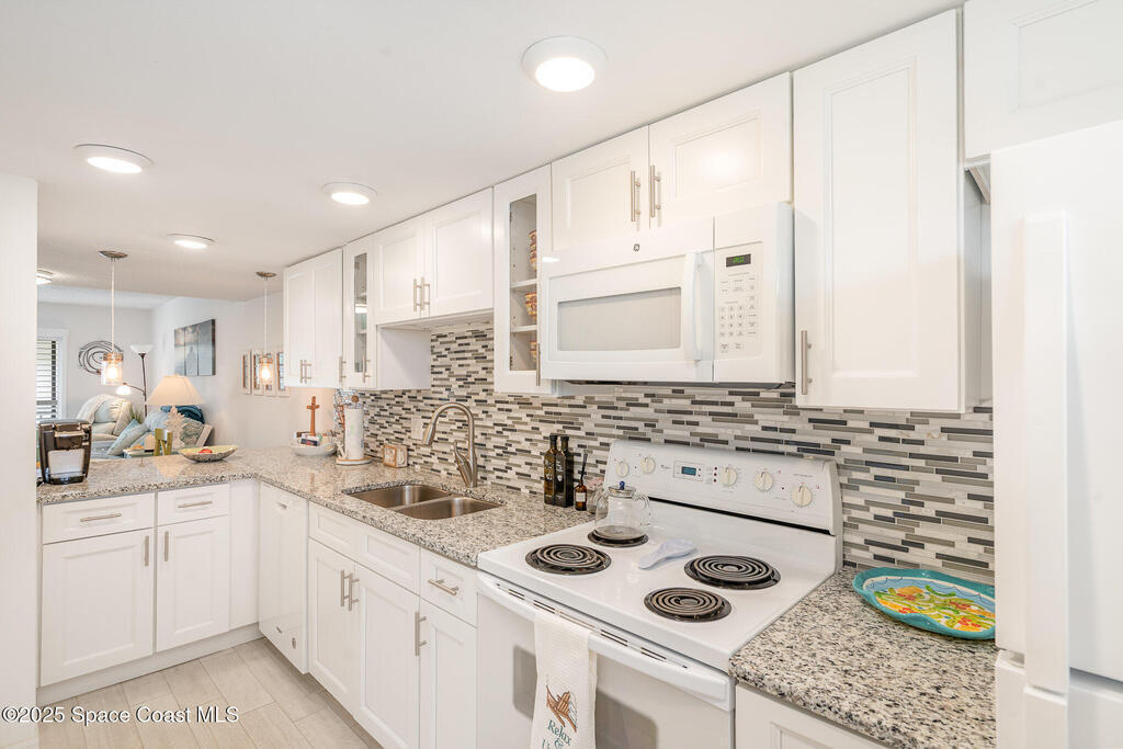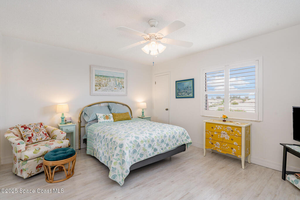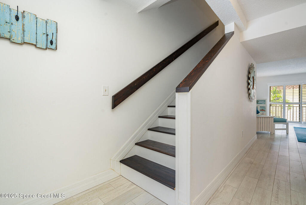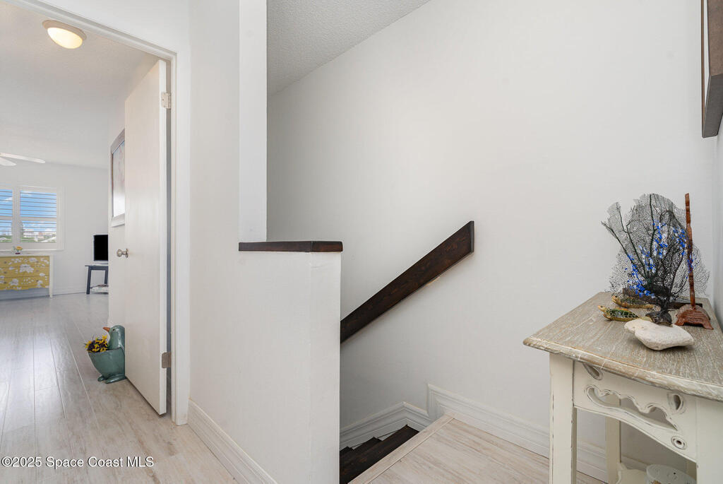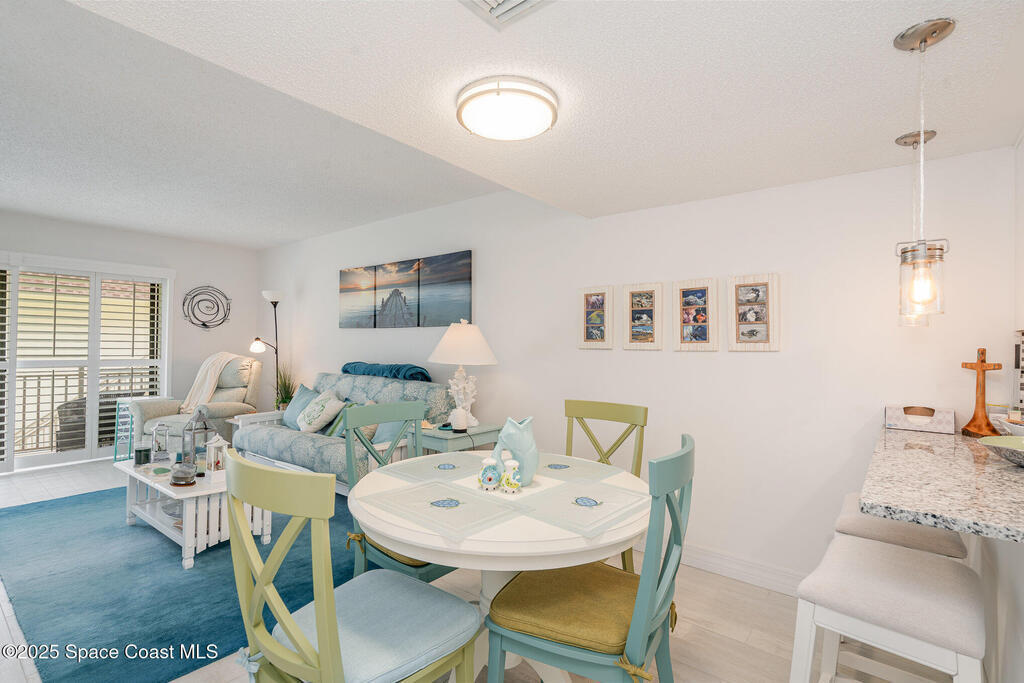 Just a short stroll from the pristine beaches of Paradise Park, this spacious 2-bedroom, 2.5-bath condo offers the perfect blend of coastal charm and modern comfort. Nestled in the quiet, well-maintained community of Paradise Villas, enjoy maintenance-free and affordable living in a serene setting.Step inside to discover tasteful updates throughout, including luxury vinyl plank flooring, a stylish kitchen with white cabinetry, granite countertops, and a sleek tile backsplash. The main level features a generous living and dining area, perfect for entertaining, along with a beautifully updated half bath.Upstairs, the primary suite is a private retreat with an updated ensuite bath and walk-in shower. The second bedroom also features its own updated bathroom with a tub--ideal for guests or family.Enjoy ocean breezes, rocket launches, and gorgeous sunsets from your private balcony. Community amenities include a heated pool, clubhouse with sauna, outdoor grill area, and tennis.