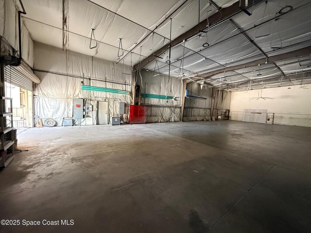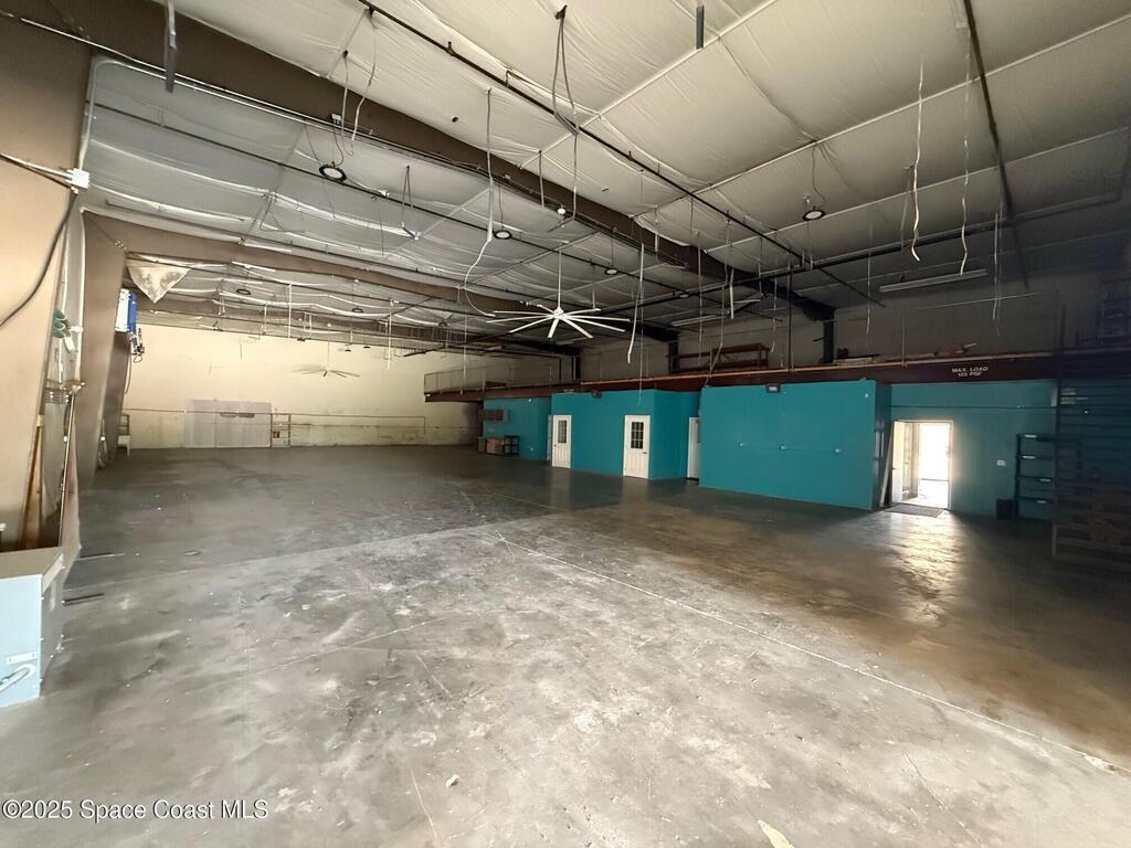 Excellent opportunity to lease a 7,500 SF warehouse in northeast Palm Bay! Interior is est. 2,500 SF office + 5,000 SF warehouse. There is a bonus upstairs mezzanine of approximately 2,500 SF. Unit is 100% fire sprinklered. Warehouse has concrete flooring and est. 17' 6'' - 20' clear height throughout. There is one 16' wide x 10' tall +/- door + two 10' x 10' +/- grade level doors. Two deep well docks. Lease includes a paved/fenced yard adjacent to the premises. Utilities include City Water/Sewer and 3-phase 480v 400amp FPL electric. Strategically positioned just off of US1 approximately halfway between Palm Bay Road and US 192, both of which are direct I-95 connectors. Nearby employers include Raytheon, L3Harris and Northrop Grumman to name a few. Make this the future home for your business today!