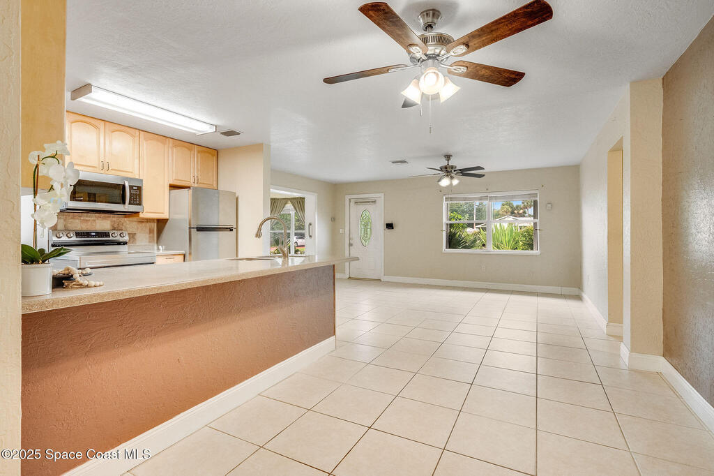 Step into potential at this charming 3-bedroom, 2-bath Merritt Island home, ideally located just minutes from the water. With a newer roof (2018), updated electrical panel, full solar inverter system, reverse osmosis water system, and accordion hurricane shutters, this property offers comfort, efficiency, and off-grid potential. Inside, enjoy an open living space that flows into a large flex room and indoor laundry area--perfect for added functionality. The fully fenced backyard features multiple sheds for storage and plenty of space to garden or play. Just a short walk to both the elementary and high schools, this home is filled with opportunity in a prime location.