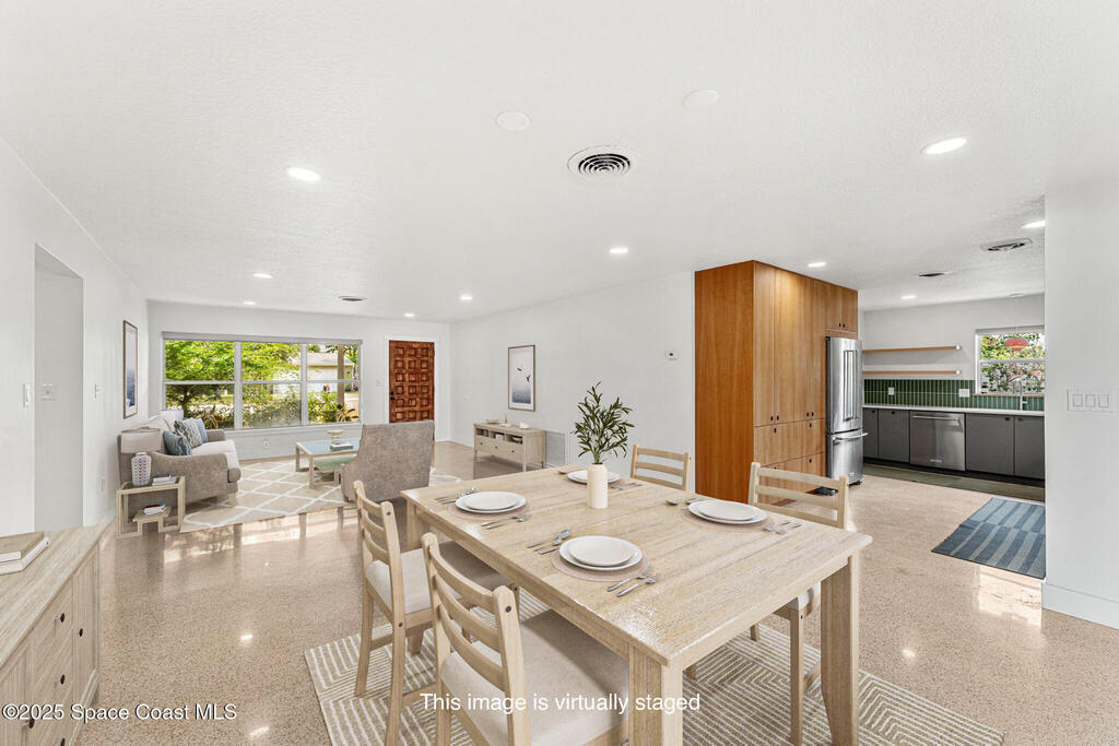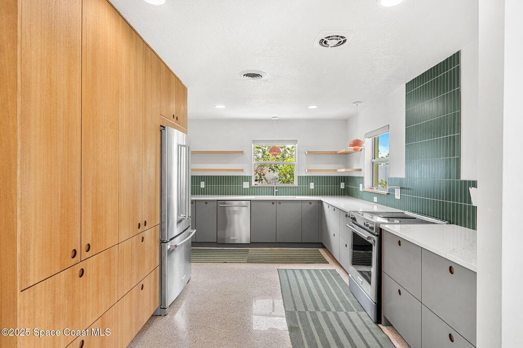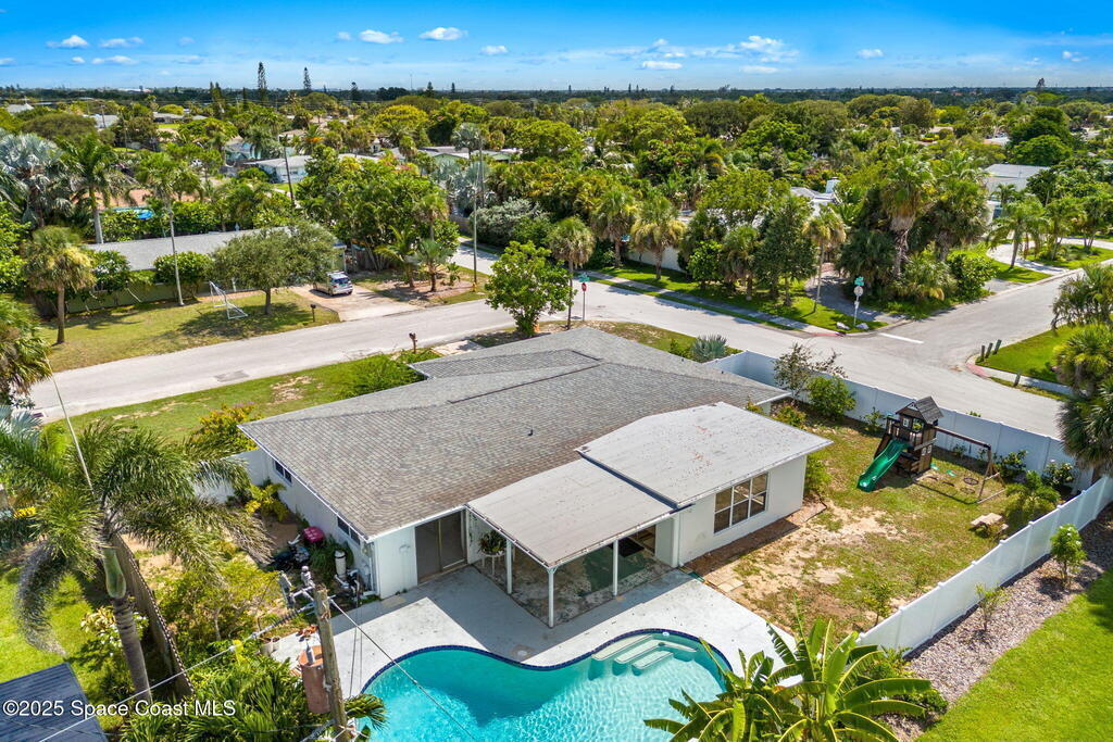 Completely updated 3BR/2BA pool home on an oversized corner lot in one of Satellite Beach's most desirable neighborhoods--just a short walk to Pelican Beach, Gleason Park, and top-rated schools.This solid block home checks all the major boxes right up front, featuring STRUCTURAL REINFORCEMENT (FOUR CORNERS), NEW PLUMBING, NEW ELECTRICAL PANEL, ROOF (2018), and a RESURFACED POOL WITH UPDATED TILE. These high-value improvements deliver peace of mind, longevity, and a strong investment foundation before you even step inside.Indoors, a stunning brand-new kitchen showcases Reform CPH soft-close cabinetry, premium KitchenAid appliances, and beautifully refinished original terrazzo floors that bring timeless mid-century charm back to life. Spacious bedrooms include cedar-lined walk-in closets and custom blackout shades.