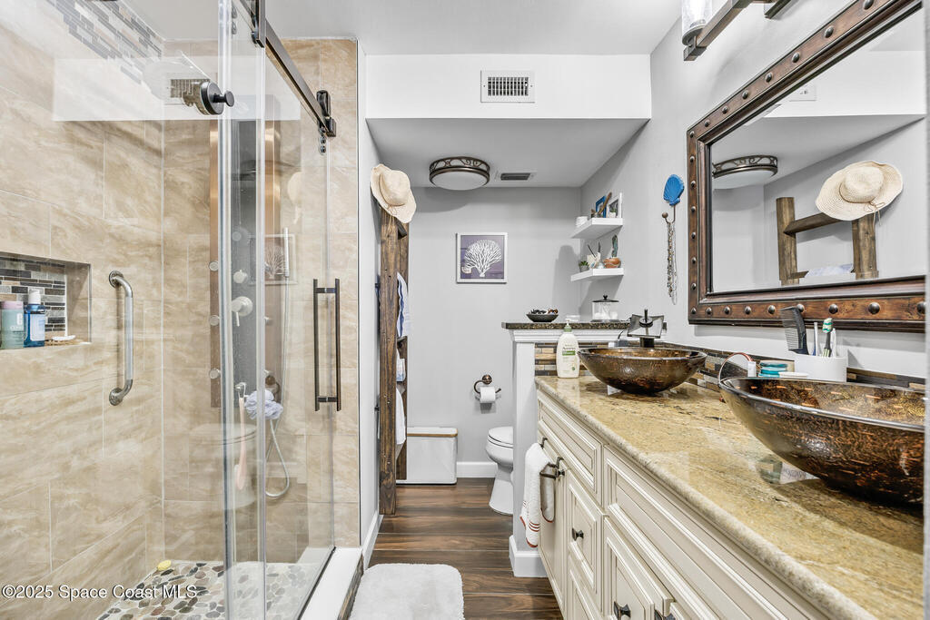 Riverfront Corner Condo -- Best Spot in the Building First-floor corner unit with stunning river views, tons of natural light, and no stairs. Watch rocket launches from your living room or screened patio!Flexible Layout + Stylish Updates Originally a 3-bedroom--now a spacious 2-bed with open dining. Easily convertible back to 3 bed. Beautifully renovated kitchen and primary bath complement the light and airy unit.2019 Permitted AC with svc agreement that stays w/unit until 2026. HOA Covers the Essentials Cable, sewer, trash, and water included for easy living.Waterfront Lifestyle + Amenities Everything you need to enjoy the Space Coast life.