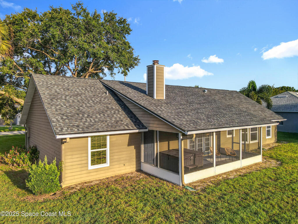 BRAND NEW ROOF! First time on the market, this original-owner home has been lovingly maintained with thoughtful care throughout. This 4 bed/3 bath split floor plan sits on a spacious 0.35-acre lot in Indian Bay Estates, a waterfront community with a private boat launch to the Indian River. The home's exterior features durable and attractive Hardie board siding. Inside, the kitchen offers granite countertops, wood cabinetry, newer appliances, a breakfast bar, and a large pantry. Vaulted ceilings and a cozy fireplace enhance the open living area, while ceramic tile flows through the main spaces and luxury vinyl plank flooring adds comfort to the bedrooms. Step out to the screened-in porch perfect for morning coffee or evening relaxation. The expansive backyard is a blank canvas for your dream outdoor oasis. Enjoy rocket launch views right from your yard! Ideally located near SpaceX, Blue Origin, NASA, Port Canaveral, beaches, and more.