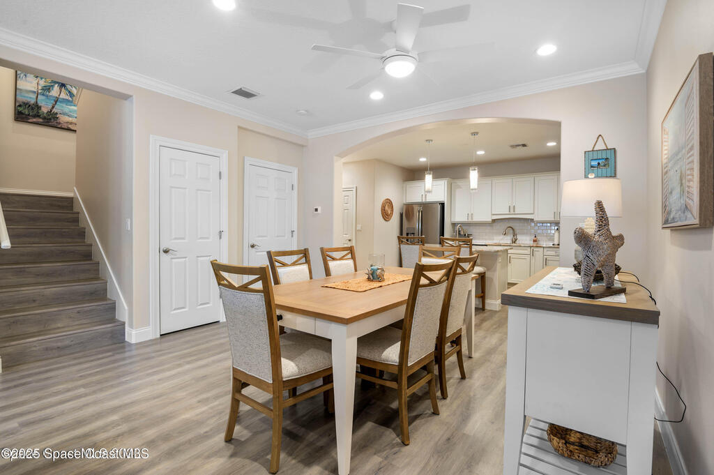Stunning Townhome in Crane Creek Landing a newer gated Downtown Community. Quality construction built with recent hurricane code requirements. Beautifully maintained and rarely lived in by snowbird owner this unit is turnkey immaculate in an exclusive, private, gated waterfront community just steps from vibrant downtown Melbourne. Nestled at the end of a private no-exit road, a few steps to the creek-side community pool and dock, offers privacy, upscale amenities, and a quiet unbeatable location. Bright and open floor plan filled with modern interior design features. The spacious gourmet kitchen, a gas stove for the master chef, and a large prep island overlooking the expansive great room. The large upstairs primary suite is a true retreat, featuring sitting area and a huge closet. Two additional good-sized bedrooms and an upstairs laundry room with built-in cabinetry. Convenient Rear-entry two-car garage with ample storage