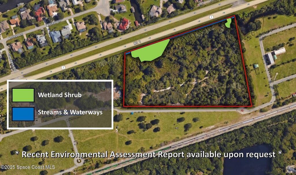 Excellent opportunity for vacant land purchase featuring 12 acres, centrally situated among thriving Viera/Rockledge and North Melbourne and located just 2.9 miles North of Pineda Causeway (SR 404), a major East-West thru-way connecting the beaches, Patrick Space Force Base and Merritt Island to mainland Melbourne, US-1 and Interstate-95. With the unique adjacent property Use, property zoning (TR-3), and minimal wetlands, there are many residential & commercial development possibilities. Development possibilities allow for creativity with potential for manufactured homes, RVs, or tiny home communities or potential to re-zone for a Use requiring high visibility and/or meeting the needs of this enriched area of Brevard County. 2 adjacent parcels included (Tax ID 2601708 and 2601710).