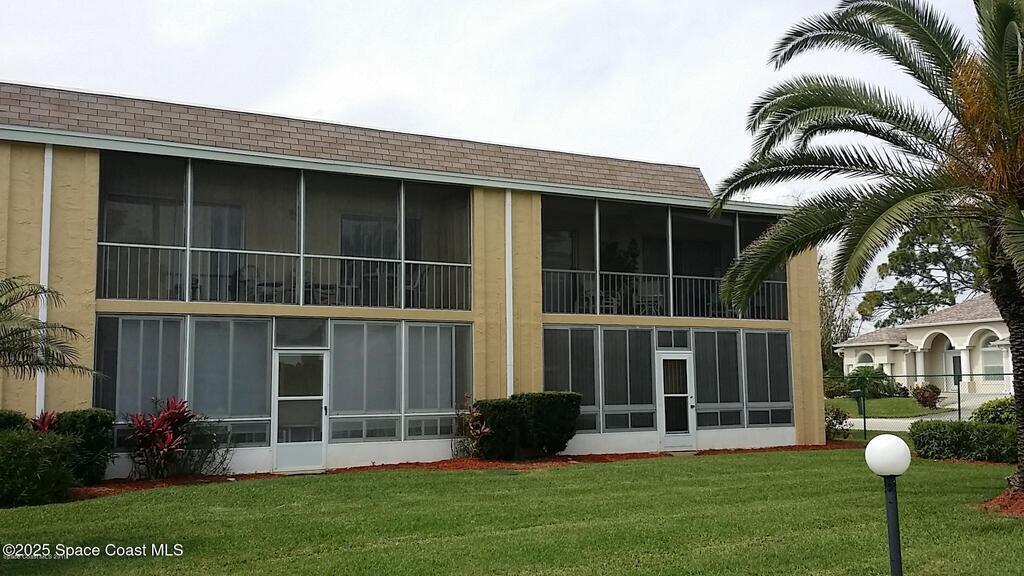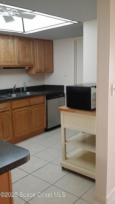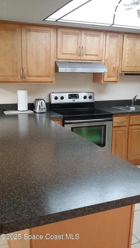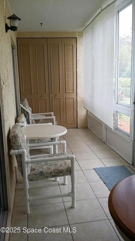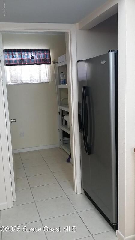 Located in well maintained 55+ community. Spacious 939 SF unit. This is a very light and bright unit with an open floor plan. Wood cabinets, stainless steel appliances, breakfast bar. Separate laundry with washer/dryer. Tile throughout except for the bedroom. Sliders from living room & bedroom to the year round porch which offers a view of the pond/waterfall and putting green. Island Villag offers an abundance of amenities: sparkling pool/putting green/ a walking trail around the pond which features a waterfall, fishes & turtles.Shuffleboard/tennis courts/Clubhouse with exercise equipment. RV /boat storage and more. Conveniently located just minutes to Cape Canaveral for beaching/Port Canaveral for dining & Jetty Park for fishing. Shopping & restaurants just minutes away. Jump on Beach Line (528) and drive to Orlando and major attractions in less than 1 hour