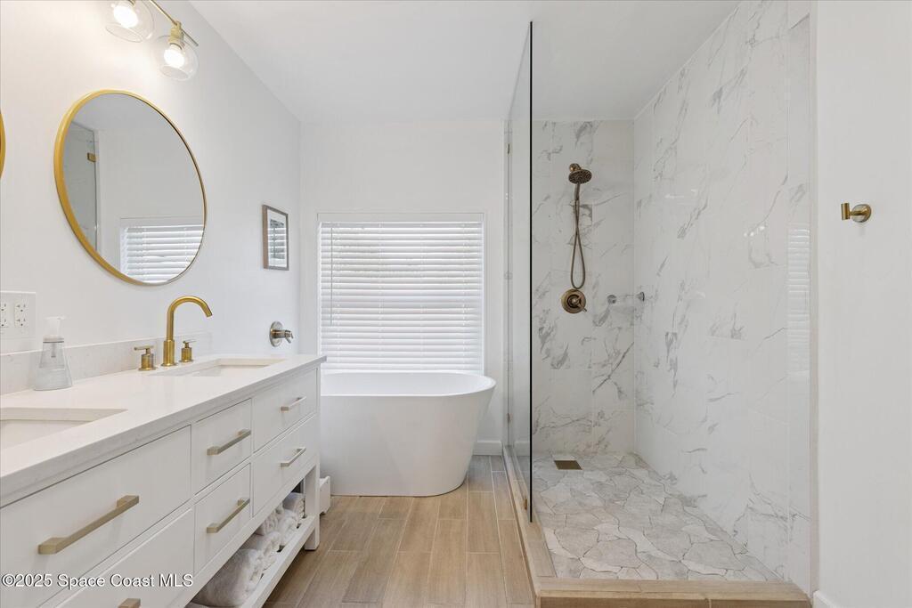 Live the ultimate Cocoa Beach lifestyle on Florida's beautiful Space Coast! This unique property at 104 W Osceola is just a short walk to the beach and has been thoughtfully converted from a single-family home into a flexible duplex, offering two separate 2 bed/1 bath units--ideal for full-time living with rental income, a vacation home with guest/in-law suite, or multi-generational living.Enjoy peace of mind with a 220-mph rated metal roof and solar panels that produce near $0 electric bills. The home features tile flooring throughout and two beautifully renovated bathrooms with custom walk-in showers--plus a soaking tub in one for added comfort. Located just minutes from the Cocoa Beach Pier, Ron Jon Surf Shop, dining, and entertainment, this home puts you in the heart of coastal living. Whether you're seeking a primary residence, a vacation getaway, or a smart investment, this Cocoa Beach gem checks every box.