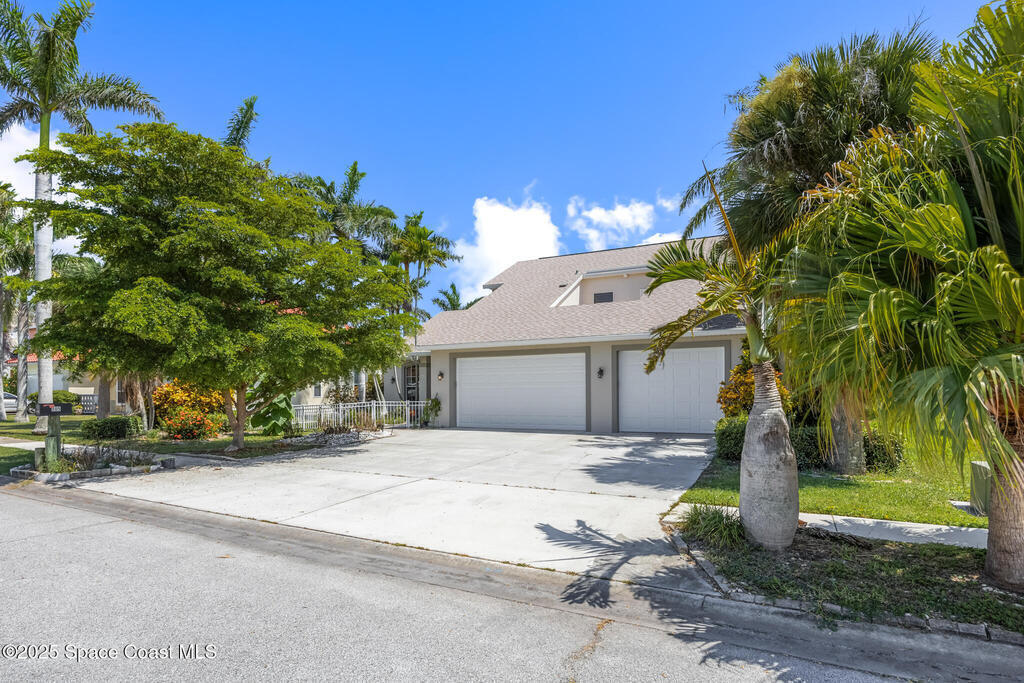 Experience coastal living in this pristine 4-bedroom Cape Canaveral concrete home! Featuring a 2022 roof, 2020 AC, freshly painted interiors, tile floors, vaulted ceilings, and abundant light. Sunny kitchen boasts newer Granite countertops & garden window. Master offers Jacuzzi, river views, and his and hers closet. Flexible layout: 2 beds/1.5 baths down, 2 beds/master/office up.Enjoy screened patio, deck, and incredible rooftop deck. This riverview tropical paradise, on a quiet cul-de-sac with Manatee Park as its backyard. Marvel at panoramic views of ships, river, parks, and rocket launches from your balconies! Close to the beach. Enjoy rapid access to Orlando/Disney (Beachline 2 mins), Port Canaveral & Cocoa Beach Pier (5 mins). Includes 3-car garage. Move-in ready comfort, style, and an unbeatable location!