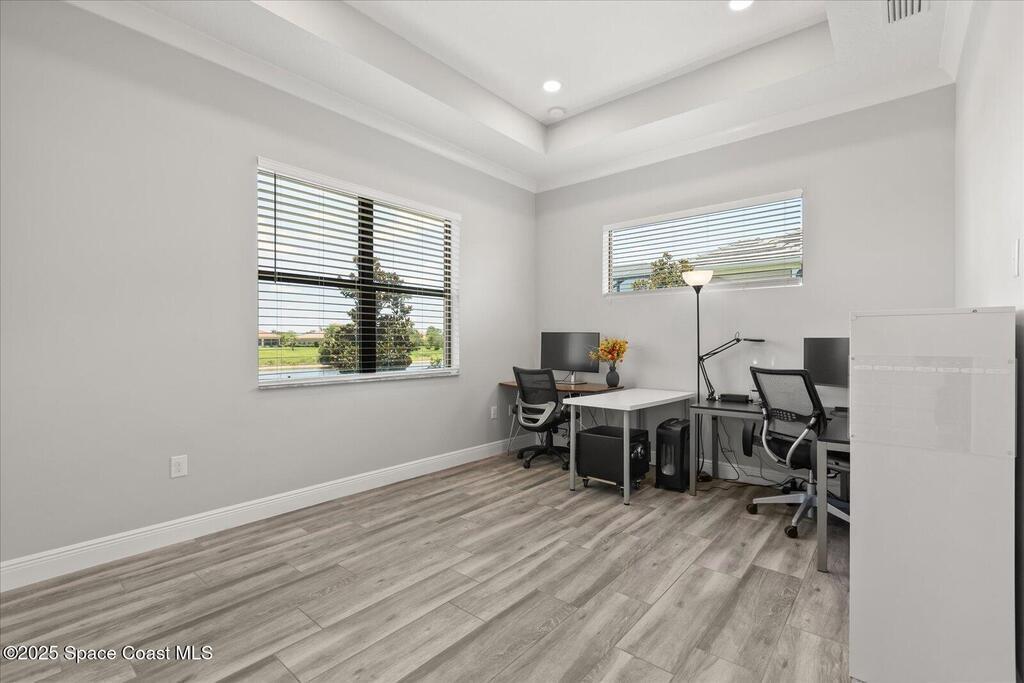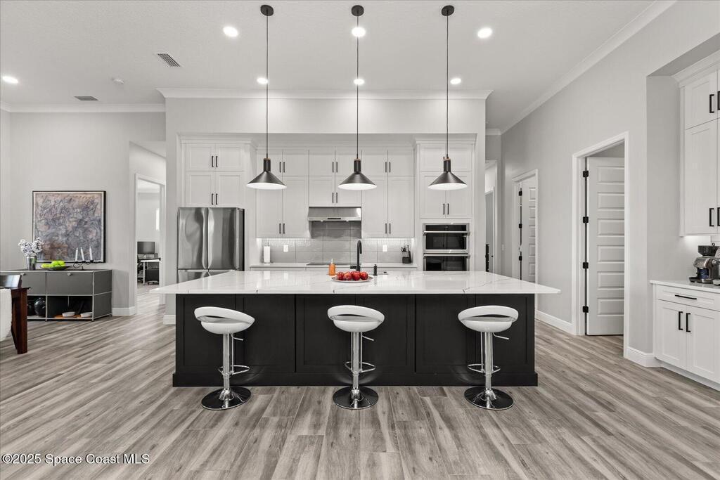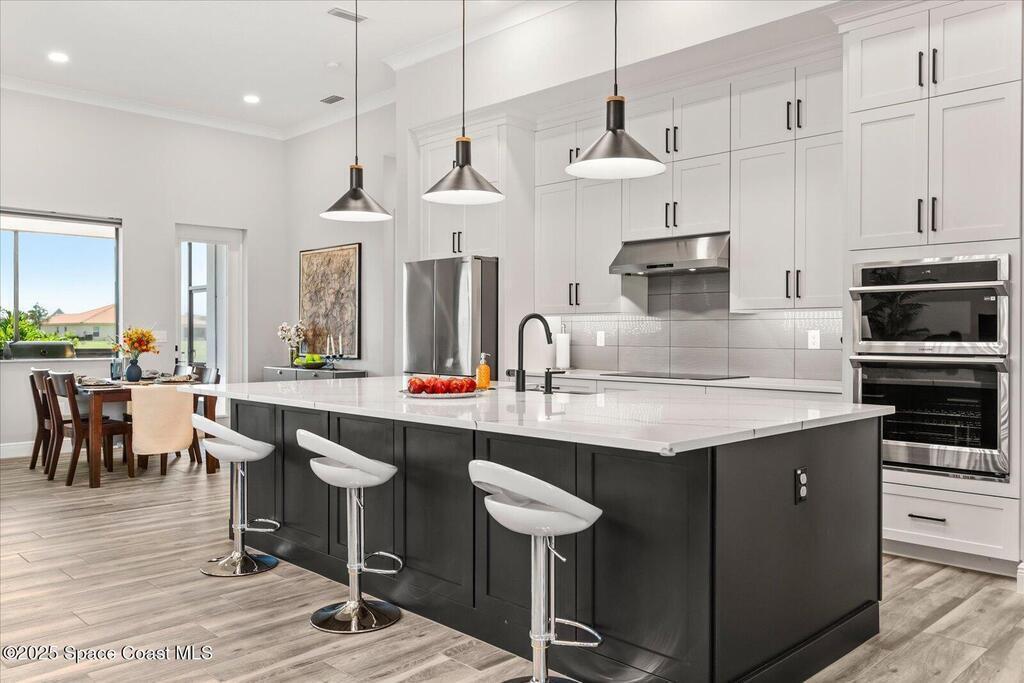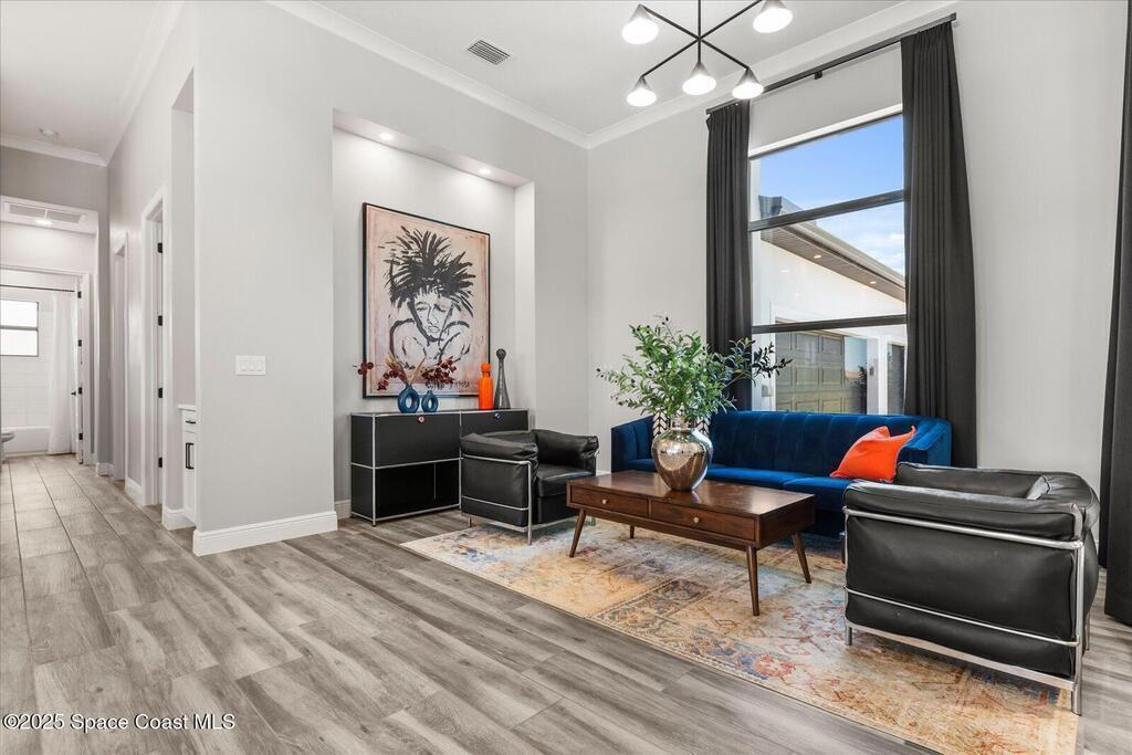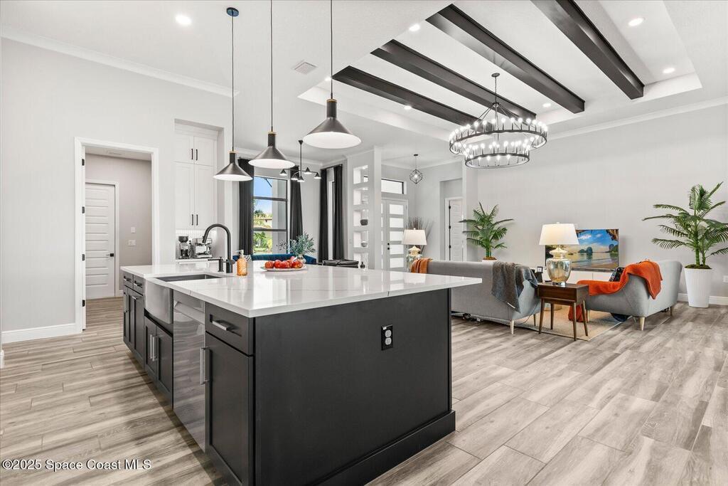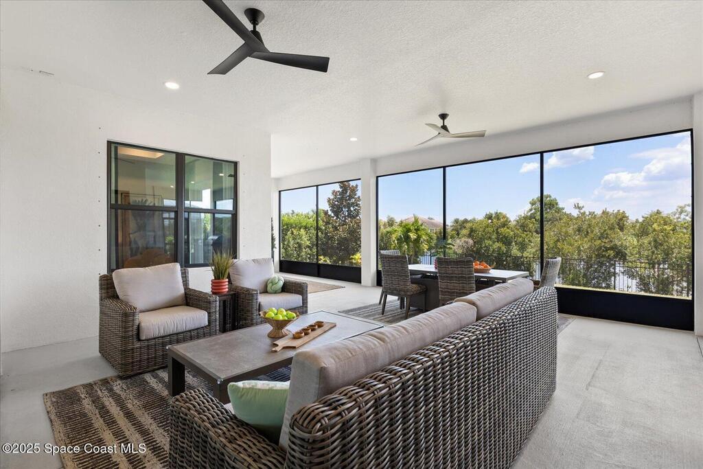 Live the Lake Washington lifestyle in this one-of-a-kind Lifestyle-built beauty. Tucked inside an exclusive gated Enclave Community is the perfect blend of Florida luxury and laid-back comfort. From the moment you step through the double doors, you'll be wowed by the soaring 12-foot ceilings, exposed faux wood beams, and open, airy layout that draws you straight to the lakefront views. The heart of the home is the expansive great room with a wall of disappearing sliders that make the corner of the house feel like it melts into the outdoors. Step onto the oversized screened patio with a full Summer Kitchen--ideal for relaxing evenings or hosting game-day cookouts with a lake breeze. The kitchen? A dream. Designed for both function and beauty, it features a massive quartz island, custom cabinetry, and a walk-in pantry with built-in organizers to keep life running smoothly. Thoughtful architectural details, elegant finishes, and a true indoor-outdoor flow make this home perfect!