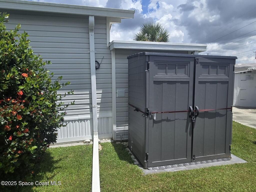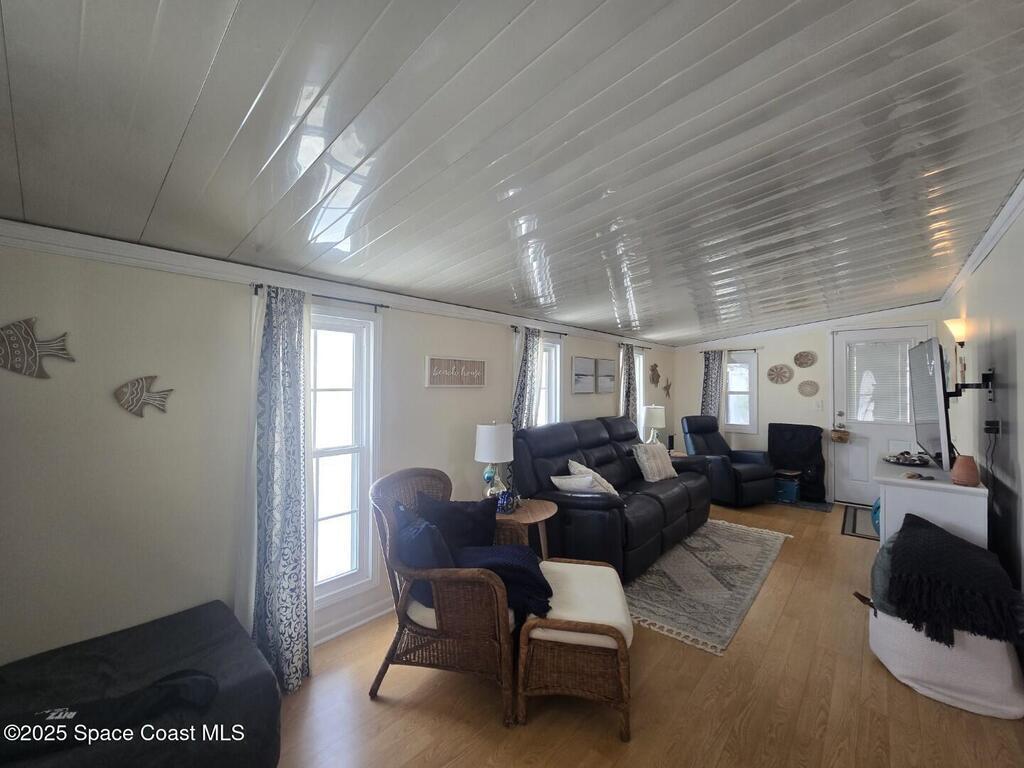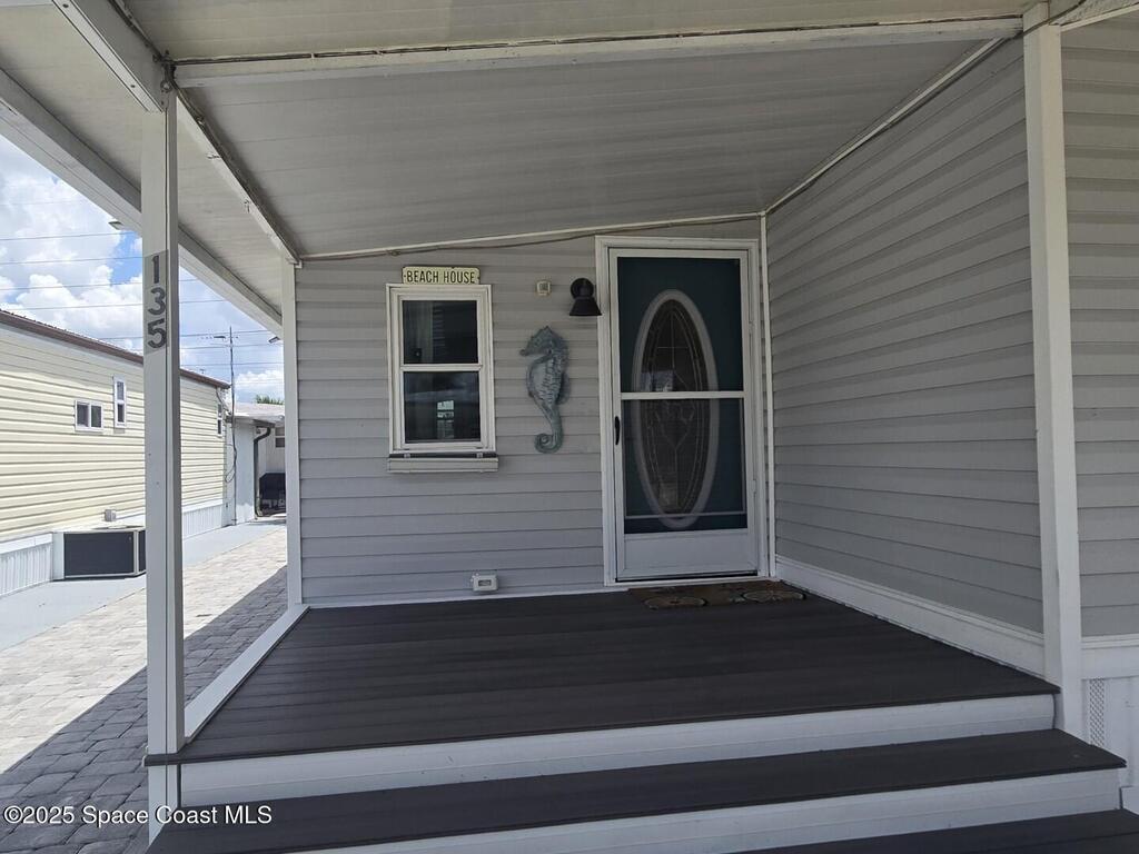Owner financing--yes! Deeded land! This bright 2BR/2BA manufactured home sits in a gated, active 55+ lakefront community with clubhouse, pool, shuffleboard, and FREE on-site RV/boat storage (first-come, first-served). Move-in ready: updated windows, new washer/dryer and water heater, recent re-pipe, refreshed bath and bedroom floors--passed recent 4‑point inspection. A spacious family room opens to a large screened patio with new fans and winter curtains. The entertainer's kitchen offers an eat‑in island, ample cabinets, and a built‑in coffee bar. Low HOA and a beachy vibe--perfect as a second home or easy retirement. Watch rocket launches and enjoy quick access to Orlando International Airport, attractions, and the famous Cocoa Beach. Must see!