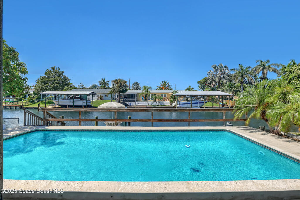 ***Save Big: 1% lender credit (based on loan amount) toward closing costs or rate buy-down with seller's preferred lender. Ask for details!*** A HOME ON THE CANAL PRICED TO MAKE IT YOUR OWN! Whether you're a boater looking for your own dock on navigable water, or you've always dreamt of living on the canal, look no further! This spacious 4-BR, 2-BA, 2-GA, pool-home, with 70' + of canal frontage, and water views throughout, will check all the boxes. Experience the excitement of rocket launches from nearby Kennedy Space Center, playful dolphins, and the gentle manatees, frolicking in the water from your 160 sq. ft. dock, or from your large pool, overlooking it all. Enjoy the fresh fruit of your mature mango tree, avocado tree, and a thriving grapevine in your backyard. As well as the oversized driveway for your vehicles, boat, or RV. With a New-Roof installed in 2024 this home only awaits your style!