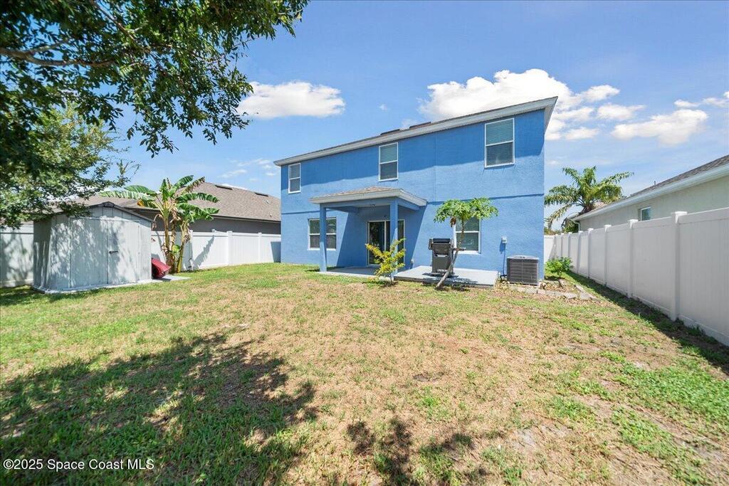 Experience refined, move-in ready living in this beautifully maintained two-story residence, ideally located just minutes from the natural beauty of Wickham Park. Bathed in natural light, the home features fresh exterior paint (2025) and a brand-new central air conditioning system (2025), offering turnkey comfort and peace of mind.Bright, open floor plan perfect for entertaining, with a cozy family room featuring updated flooring .Chef's kitchen boasts granite countertops, stainless steel appliances, a deep sink, center island, and a walk-in pantry . Upstairs master suite is oversized with abundant natural light; plus three generous guest bedrooms and convenient second‑floor laundry .Outdoor amenities include a fenced backyard, covered lanai, wood deck, and newer storage shed--plus a mini‑split in the garage to keep your car cool .Located in a peaceful, well‑appointed community with nature trails, and close to shopping, dining, and the Beaches!