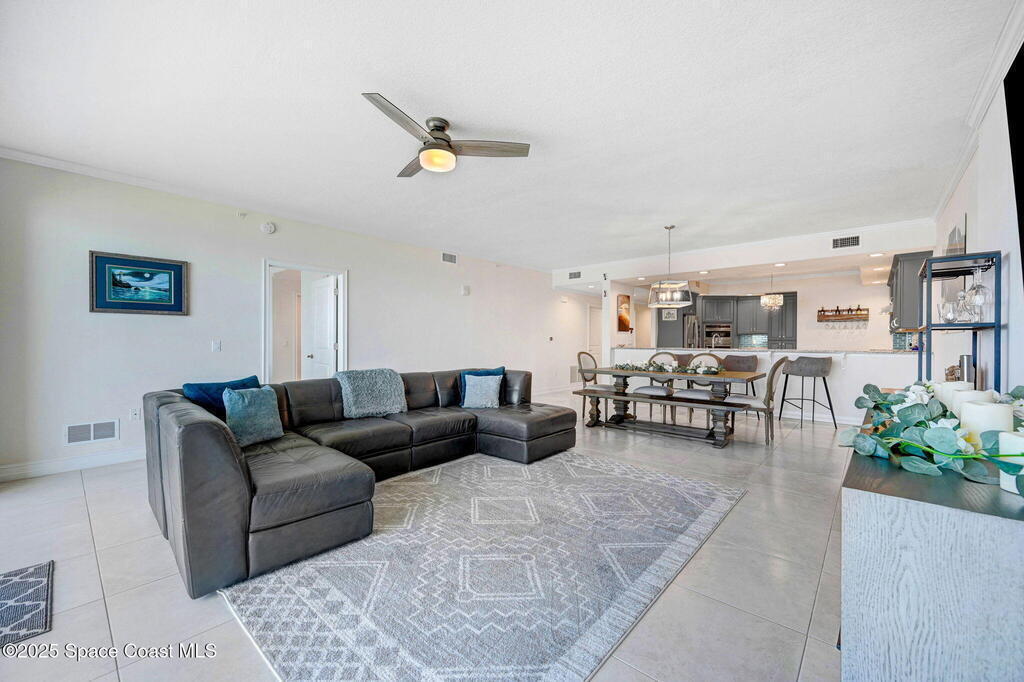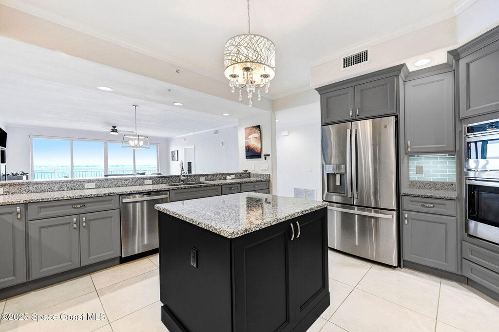 Welcome to MODERN RIVERFRONT living in a SUPERSTRUCTURE! Experience ease and comfort of ideal condo ownership in a 4-year-old new construction CEMENT FORTRESS with none of the concerns or expenses of older buildings. This 3 BEDROOM, 3 FULL BATH residence on the 6th FLOOR is GORGEOUS and comes with a 1-CAR ATTACHED GARAGE. Along with a MILLION DOLLAR VIEW overlooking the INDIAN RIVER, and a HUGE BALCONY from which to enjoy it, this home features a designer kitchen with EUROPEAN CABINETRY, upgraded appliances, GRANITE countertops, CROWN MOLDING, cordless REMOTE-controlled blinds, CUSTOM CLOSETS, tile throughout (NO CARPET), and a FULL-SIZE LAUNDRY room with storage and sink. All windows and sliders are HURRICANE IMPACT GLASS. The monthly condo fee of $819 is a bargain because it includes HOMEOWNERS INSURANCE, cable TV, INTERNET, maintenance, WATER AND SEWER, management, HEATED POOL, and clubhouse. It's a great CENTRAL LOCATION - only 10 minutes to the BEACH and 50 minutes to ORLANDO.