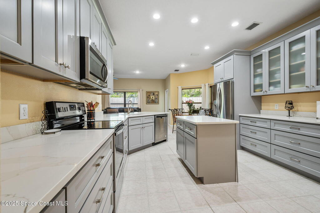 HUGE Price Improvement! Beautiful Private and move in ready home! TWO Master suites. One up & one down could accommodate multi-generational living. Completely remodeled kitchen and baths. This is a one of a kind, uniquely updated home in desired Chelsea Park! Spacious 6/3 with over 3100 sq. ft. of living space featuring: Total of 4 bedrooms on the ground floor & 2 huge bedrooms & bath upstairs. Gorgeous open kitchen with center island, stainless steel appliances & quartz counters. FULLY paid off solar panels, ROOF 2019, EXTRA INSULATION added, NEWLY painted interior/exterior, sealed driveway, epoxy-finished garage floor & porcelain tiled front and back porch. Fenced for furry friends. A MUST SEE!! This community has a park, playground, basketball hoops, fishing ponds & functions for the kids during the holidays.Low HOA & zoned for Brevard's best schools. Close to GREAT restaurants, shopping and 20 minutes to the ocean and 45 minutes to Orlando airport. VERY Motivated owner.