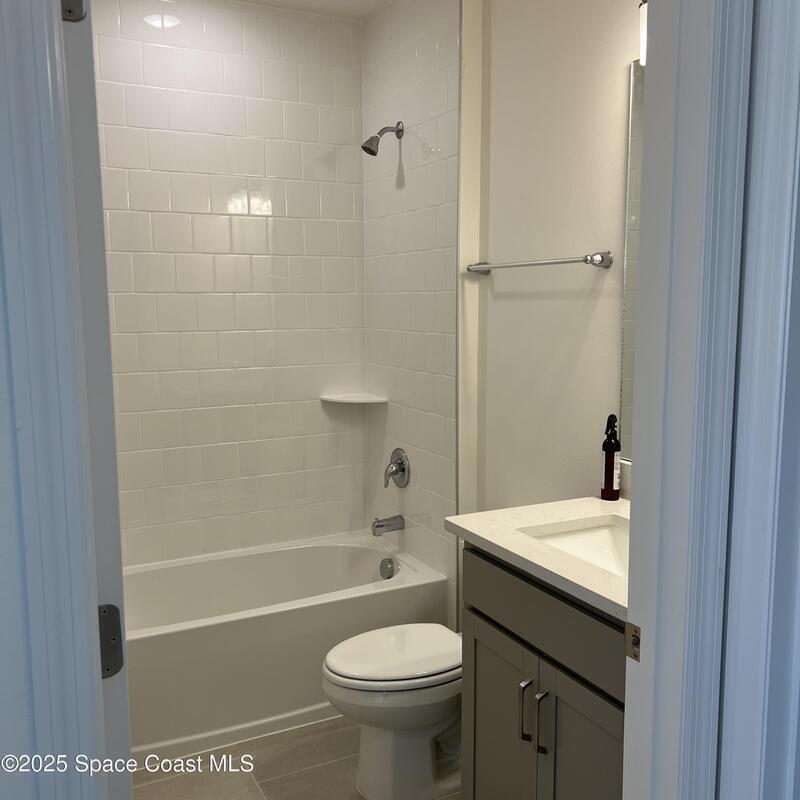 BONUS INCENTIVES THIS WEEKEND..THE BUILDER HAS INSTALLED A WHITE VINYL FENCE....THE EVAN Allows you to Step into luxury with this move-in ready beautifully crafted 3-bed, 2-bath home in NE Palm Bay featuring a spacious 2-car garage. Enjoy high-end finishes throughout, including stunning quartz countertops, 42'' bump-and-stagger wood cabinets with crown molding, and elegant 51/4'' baseboards. The open-concept living area is enhanced with stylish tile flooring, while plush carpet adds comfort to the bedrooms. Both bathrooms boast tile-to-ceiling showers for a spa-like touch. The modern kitchen is equipped with stainless steel appliances, perfect for everyday living or entertaining. Ideally located with easy access to I-95, shopping, and dining.