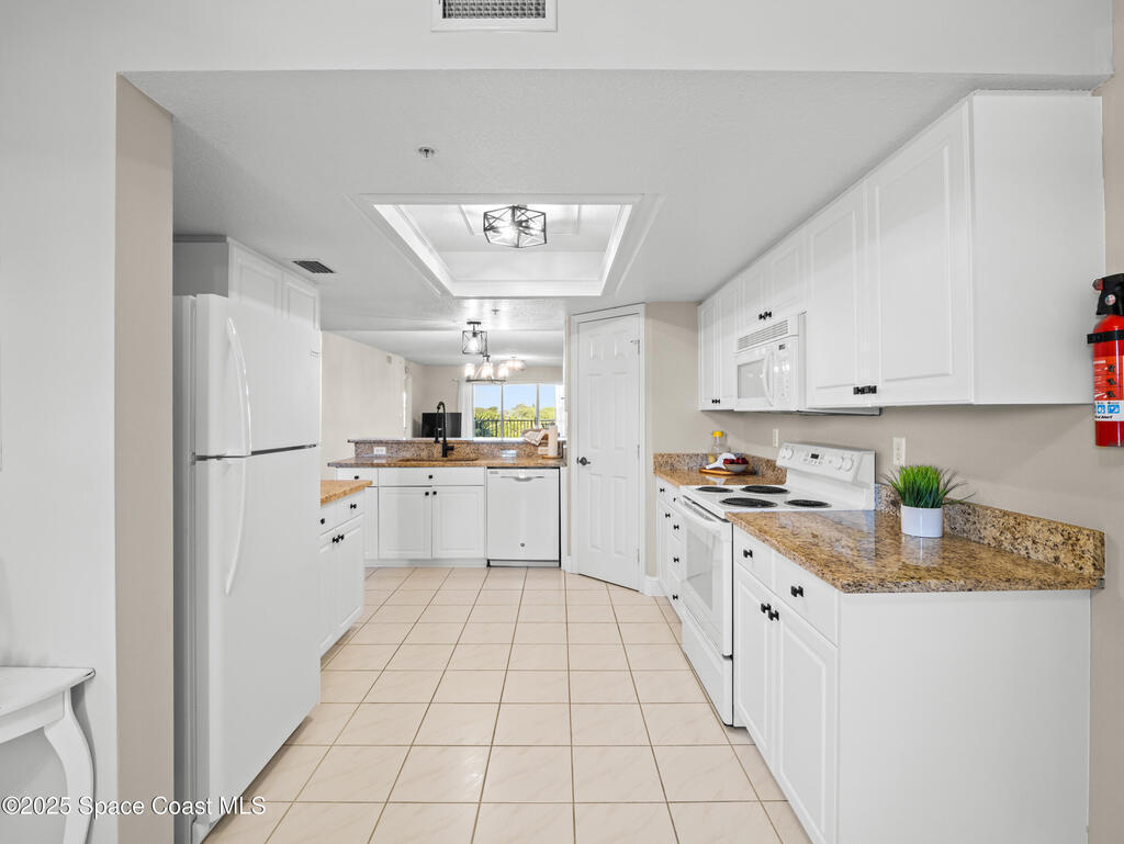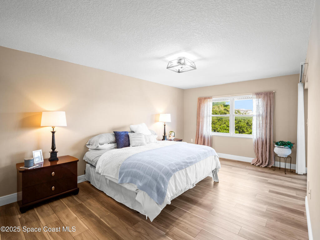 Move right in! Partially furnished 2 bedroom 2 bath beautifully updated condo with serene views of the pond. Enjoy waving bon voyage to the cruise ships leaving the famous Port Canaveral and rocket launches from your 3rd floor balcony. Spacious floorplan with over sized bedrooms with adjoining bathrooms, walk in closets and the primary suite has a tub and slider to the balcony. Kitchen has granite counters, dishwasher and built in microwave, large pantry and breakfast bar. Inside laundry closet, owners closet and ground floor garage provide amble storage. Easy maintenance with LVP/tile flooring and hurricane shutters for peace of mind. Gated and updated grounds with private beach access, pool, exercise room, car wash station and clubhouse. Active community with socials, pickleball, tennis and acqua aerobics. 35 minutes to Orlando airport, 5 minutes to the Cruise lines, restaurants, only a 5 minute walk to the beach. Let your Florida Condo life begin now!