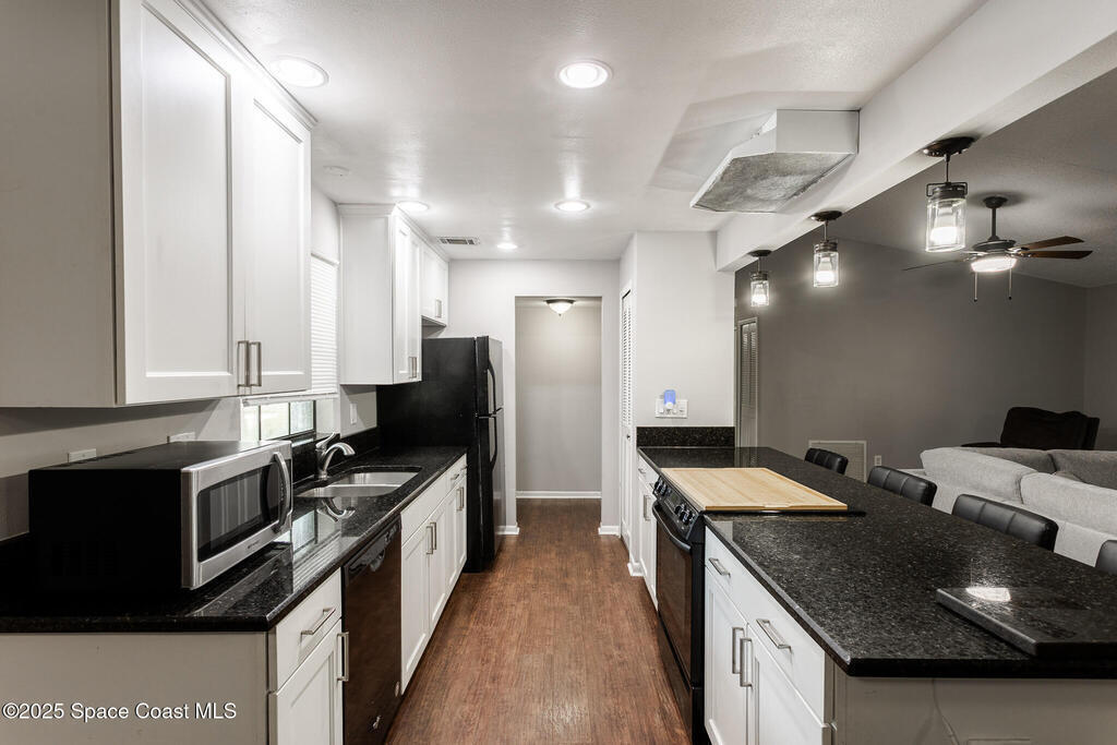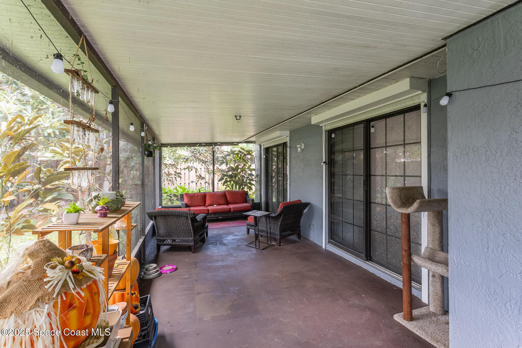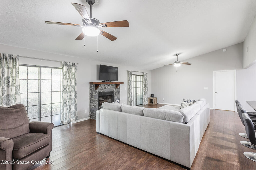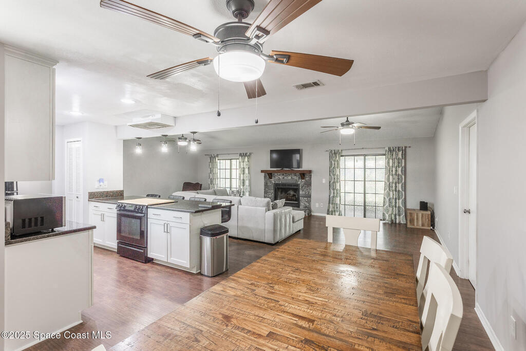 Completed UPDATED 4 bedroom house with 1740 sq ft in the perfect location. Updates include.... brand new kitchen from top to bottom with a huge breakfast bar opening to the living & dining rooms, granite counter tops, stainless steel appliances, new luxury waterproof vinyl flooring & NO CARPET. Both bathrooms updated with walk in shower in the master & double sinks in both bathrooms. NEW ROOF in 2023, water heater only 4 years old & a new hurricane rated garage door. Convenient roll down hurricane shutters, huge private back porch and 3/4 of yard is fenced in & has a fire pit for lots of fun. Light and bright with vault ceilings, wood burning fireplace and freshly painted inside. Double sliders from living room to the porch and sliders from the master to the porch and guest bath has access to the porch as well. One of the best neighborhoods that's super close to Florida Tech and 10-15 minutes from the beach. Corner lot so plenty of space for parking and a super chill HOA.