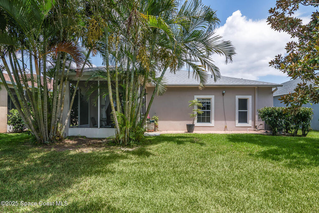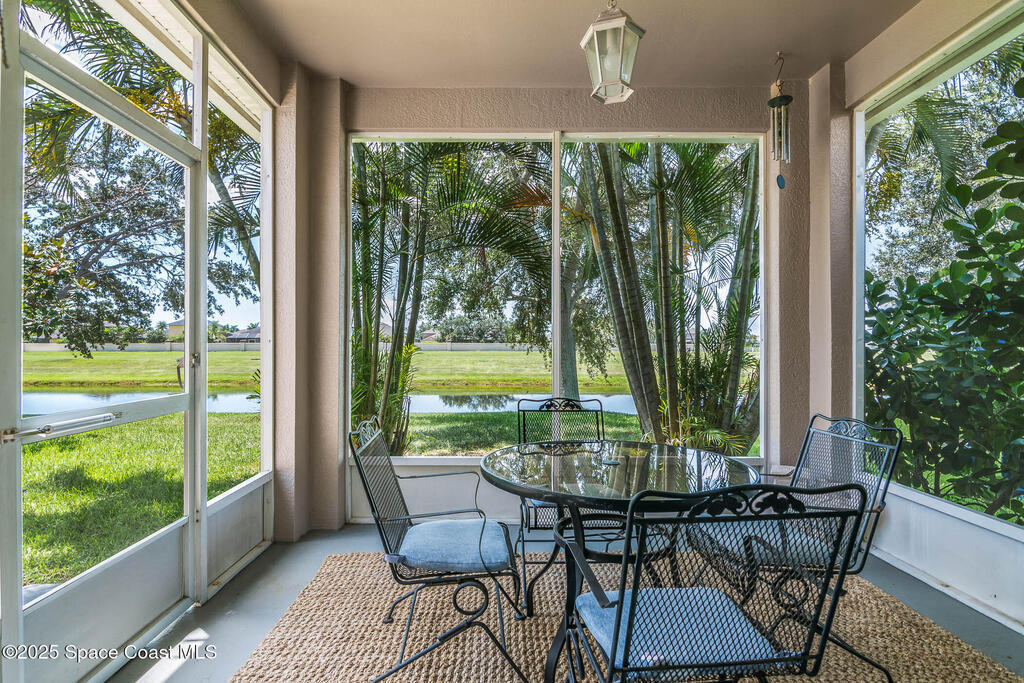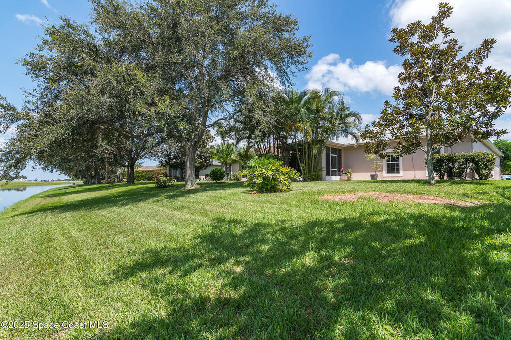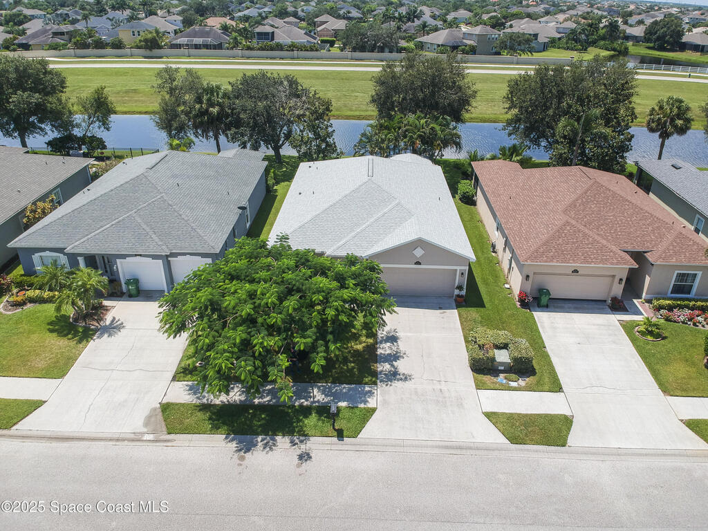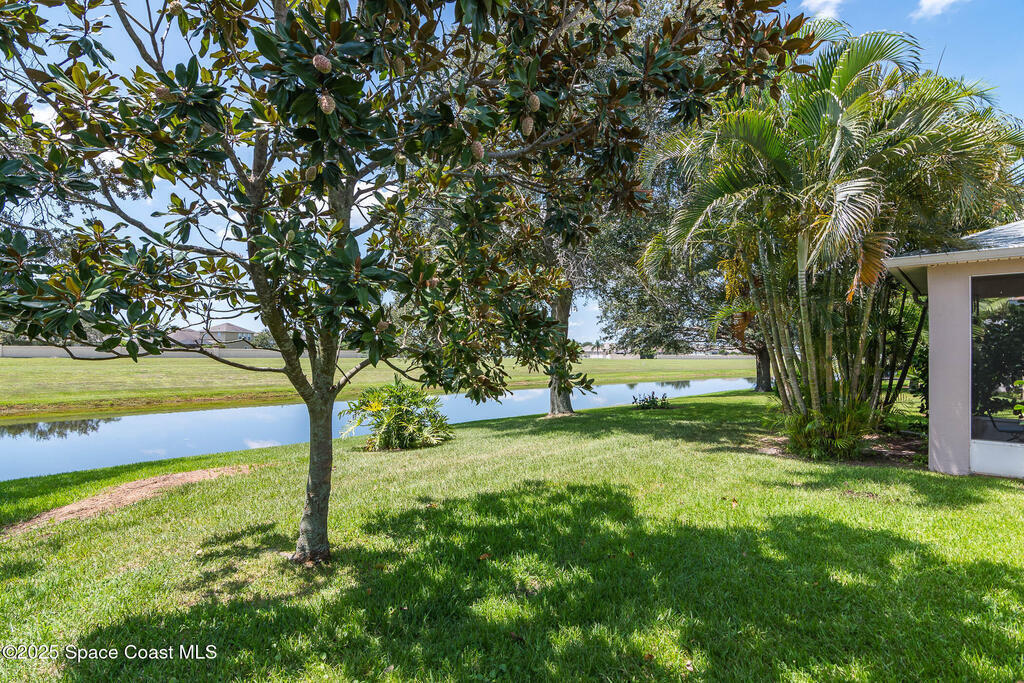 Welcome to this immaculate waterfront home in the heart of West Viera, offering modern updates and effortless living! Enjoy the benefits of a brand-new roof (2023), water heater (2025), interior/exterior painted (2025) & AC (2015). Step inside to an open layout w/ vaulted ceilings, wood-look tile floors, a spacious great room, and a large casual dining area. The kitchen features tall cabinets, matching stainless steel appliances, generous counter space with a breakfast bar, and a huge walk-in pantry. The en-suite offers a tranquil retreat with a walk-in closet, a new vanity with dual sinks, a garden tub, and a separate step-in shower. The guest bathroom also has a new vanity. Sliding doors lead to the screened porch, where you can relax with serene water views and no rear neighbors. A sprinkler system in the front and back keeps the lawn lush year-round. All of this just minutes from top-rated schools, shopping, dining, golf, and parks--in one of Brevard's most desirable neighborhoods.