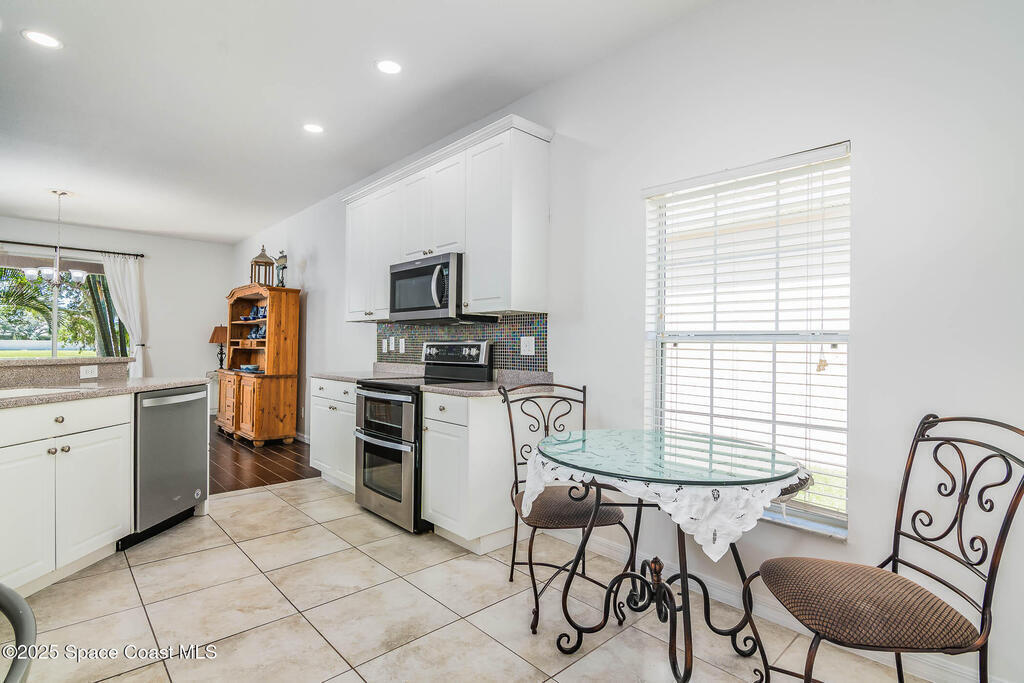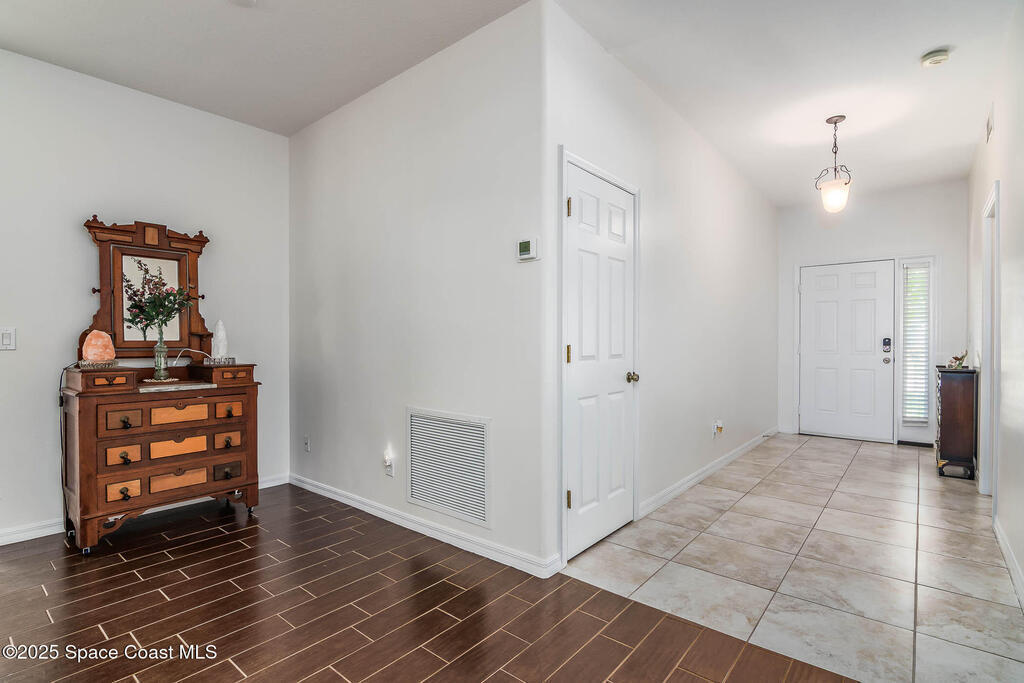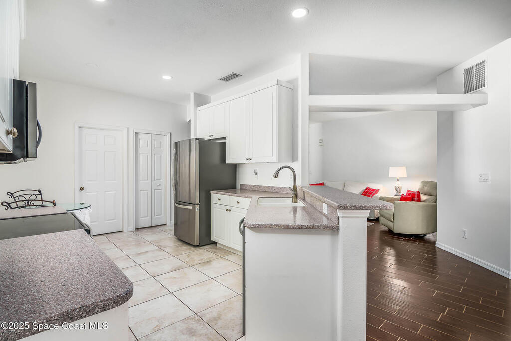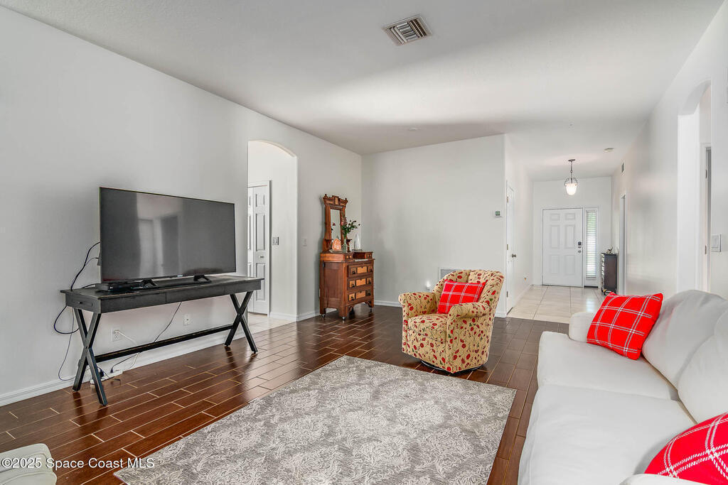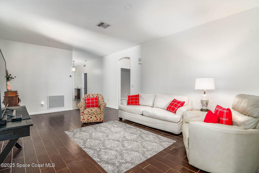 Welcome to this immaculate waterfront home in the heart of West Viera, offering modern updates and effortless living! Enjoy the benefits of a brand-new roof (2023), water heater (2025), interior/exterior painted (2025) & AC (2015). Step inside to an open layout w/ vaulted ceilings, wood-look tile floors, a spacious great room, and a large casual dining area. The kitchen features tall cabinets, matching stainless steel appliances, generous counter space with a breakfast bar, and a huge walk-in pantry. The en-suite offers a tranquil retreat with a walk-in closet, a new vanity with dual sinks, a garden tub, and a separate step-in shower. The guest bathroom also has a new vanity. Sliding doors lead to the screened porch, where you can relax with serene water views and no rear neighbors. A sprinkler system in the front and back keeps the lawn lush year-round. All of this just minutes from top-rated schools, shopping, dining, golf, and parks--in one of Brevard's most desirable neighborhoods.