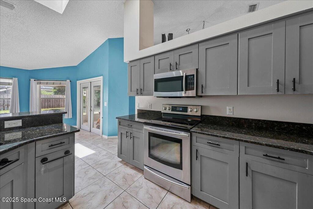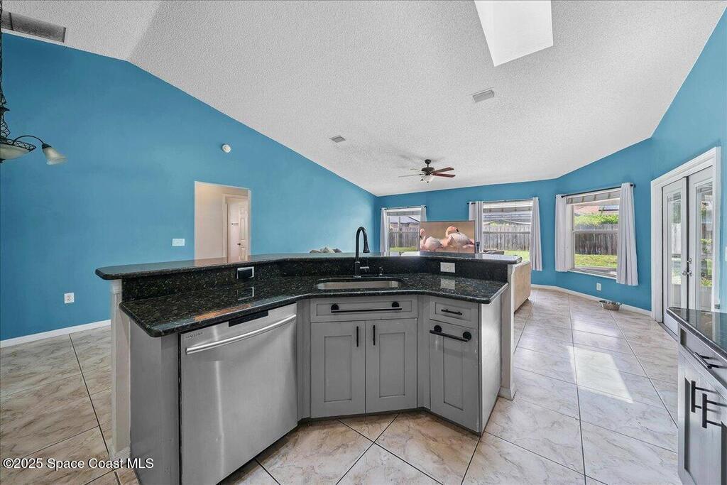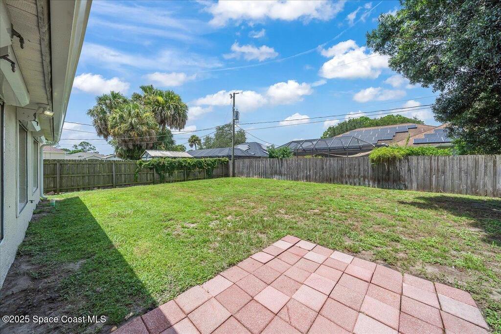 Welcome to this spacious and beautifully maintained 4-bedroom, 2-bathroom home nestled in a quiet, secluded Palm Bay neighborhood. This move-in-ready residence blends style, comfort, and convenience. Inside, you'll find granite countertops in the kitchen and bathrooms, tile flooring throughout the main living areas, and a combination of laminate and carpet in the bedrooms. The large laundry room includes a washer and dryer and provides ample storage. The open layout makes entertaining a breeze. Enjoy outdoor living on the spacious back patio with direct access to a full bathroom -- ideal for gatherings or relaxing evenings. The fully fenced backyard offers privacy and security. Conveniently located just minutes from I-95 and directly across from Hammock Landing, this home puts shopping, dining, and entertainment at your doorstep. Don't miss the opportunity to own this well-maintained gem in one of Palm Bay's most desirable locations!