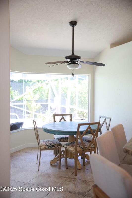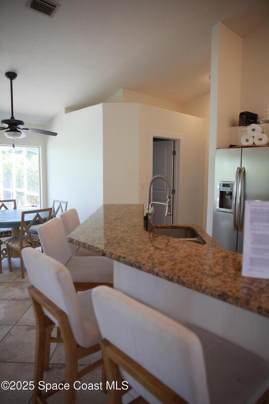 Motivated Seller! Beautifully maintained 3-bedroom, 2-bathroom pool home located in the desirable, family-friendly community of Vizcaya Estates. Enjoy the benefits of Suntree living without the added cost or restrictions of a Suntree HOA. This home is just a short walk or bike ride to highly rated Suntree Elementary, and is zoned for the new Viera Middle School, as well as Viera High School. Less than a mile away is the Suntree Country Club, featuring two of the finest golf courses in the state.The home is filled with natural light and features vaulted ceilings, tiled flooring throughout, and ceiling fans in every room. Its open floor plan centers around a spacious family room that flows into the dining area, kitchen, and breakfast nook. The kitchen is equipped with granite countertops, stainless steel appliances, and a large bar-height counter, ideal for entertaining.The primary suite offers an updated bathroom with dual sinks, a stand-alone tub, a separate walk-in shower