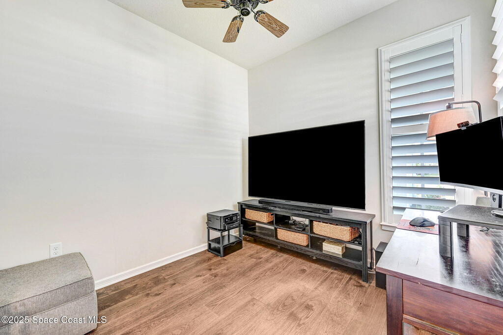 Motivated Sellers!! Welcome to your dream home in the highly sought-after Del Webb at Viera community a! This stunning single-family home boasts 2 bedrooms, a den and a Sunroom, 2 bathrooms, and a spacious 2-car garage. The open floor plan is perfect for entertaining guests, with beautiful wood flooring throughout adding a touch of elegance. The kitchen features modern appliances and plenty of counter space for meal preparation. Relax and unwind in the sunroom, perfect for enjoying your morning coffee or reading a good book. The office space provides a quiet retreat for working from home or pursuing your hobbies.Step outside to the extended screened in patio and fenced yard. The impact windows provide peace of mind while also allowing natural light to flood the home. Del Webb at Viera offers a vibrant lifestyle with amenities such as a clubhouse. with tavern, community pool (opening soon) fitness center, pickleball, tennis courts, walking trail and Gold golf membership to Duran.