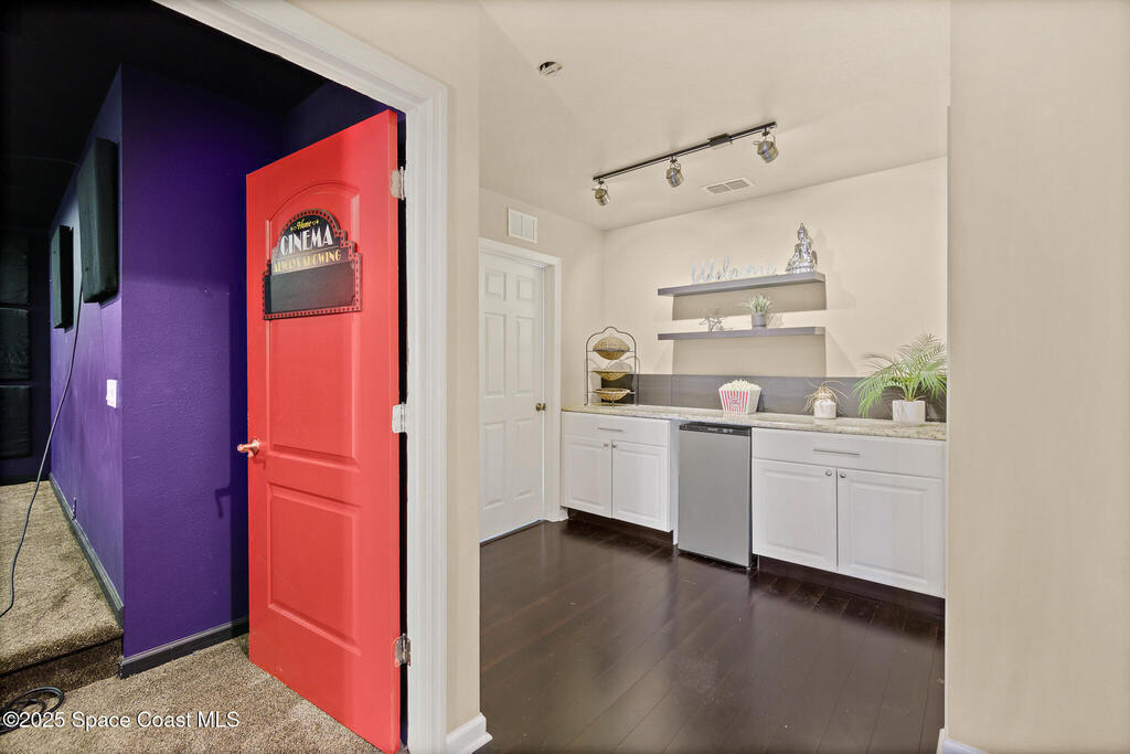 VERY MOTIVATED SELLER!!! Waterfront Beauty with Theater Room in Fern Meadows!Tucked away in the popular Fern Meadows community, this spacious 3-bedroom, 2.5-bath home with a bonus theater room (or optional 4th bedroom) offers the perfect mix of comfort and entertainment. Enjoy peaceful waterfront views from your oversized covered back porch, where nature and wildlife create a relaxing backdrop.Inside, you'll find an open layout with plenty of space to gather and entertain. The upstairs bonus room has been transformed into a fully equipped home theater, featuring a projector, screen, platform seating, ambient lighting, and built-in speakers--all included! Prefer a bedroom instead? The space can easily be converted back.There's also a kitchenette upstairs, complete with a mini fridge and storage--great for a coffee bar, snack station, or movie night setup.The main kitchen includes all appliances, and the home is wired with Cat6 Ethernet, cable, and DirecTV connections