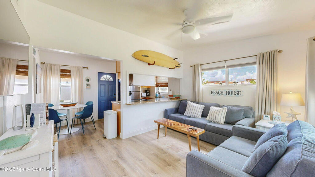AIRBNB GOLDMINE in Cocoa Beach - steps from the Ocean. 3 Updated Units + Expansion!'' Just 600 feet from the sandy shores of Cocoa Beach, this beautifully UPDATED TRIPLEX offers the perfect blend of income potential and coastal lifestyle. This property features three remodeled units - two spacious 2-BR Apartments (Units A & B) and one charming 1-BR (Unit C) each with its own washer/dryer (A-2024, B-2023, C-2023) and new waterproof wood laminate flooring (2024). The property includes ample parking, plus large, durable storage sheds behind each unit. Recent updates ensure peace of mind for investors: Roof new in 2022 by a local company with a 15-year warranty, A/C systems updated (B & C: 2022), A: older unit with service contract) Regular service contracts in place for continued maintenance. Also a large, air-conditioned, fully stocked shed & sits on an oversized lot w/extra land on the east side, offering plenty of room to expand. With the possibility of adding a second story.