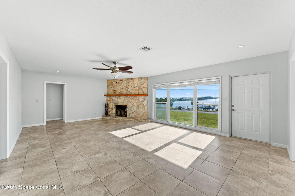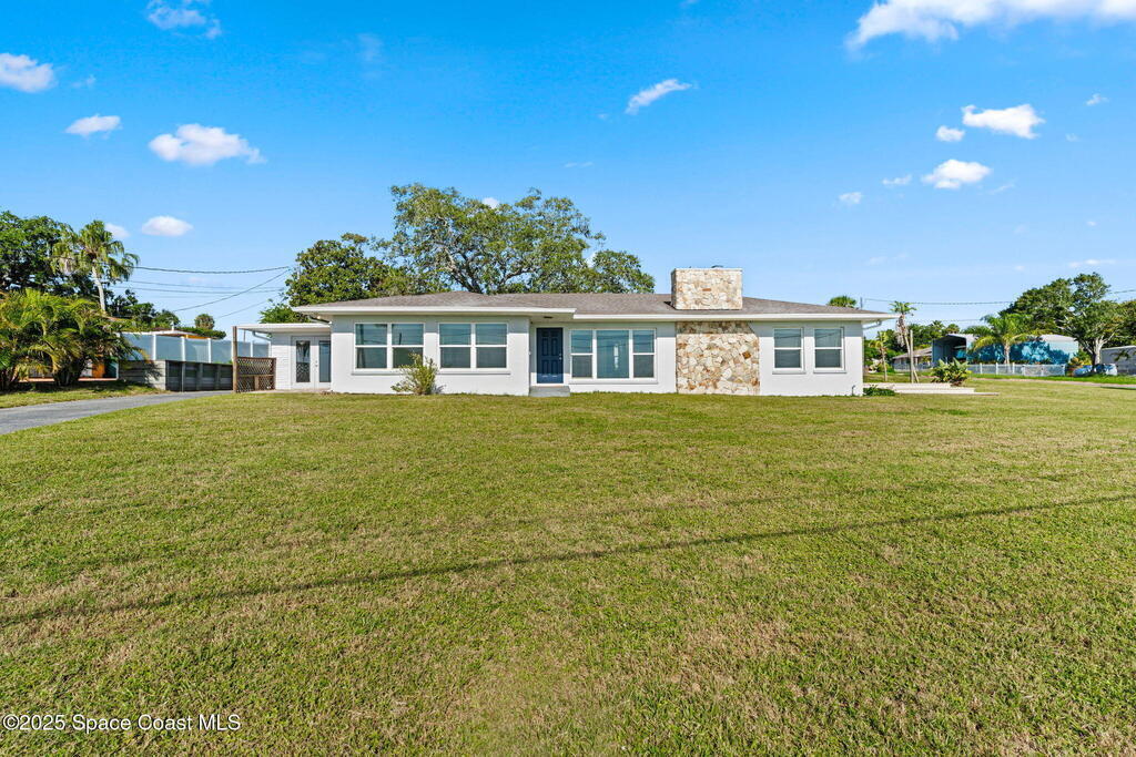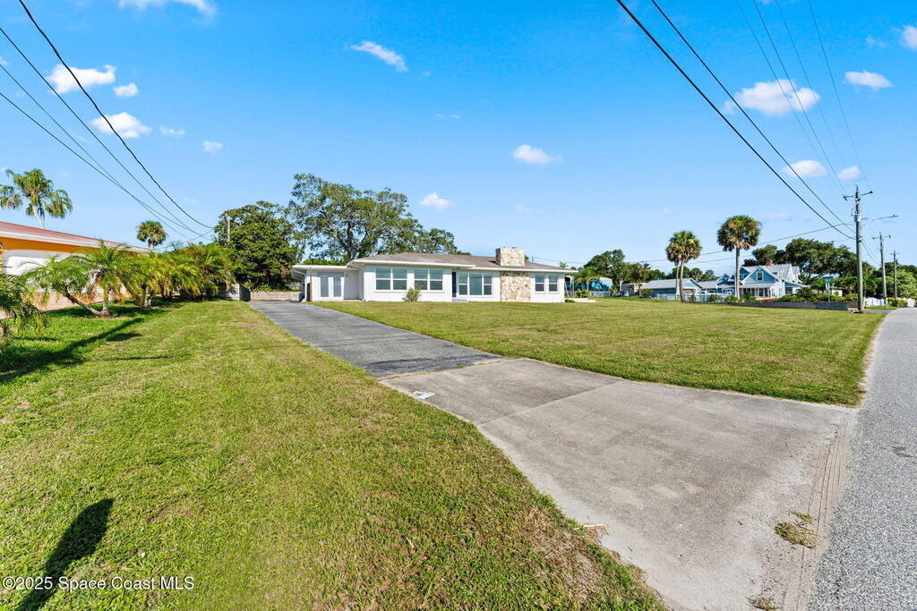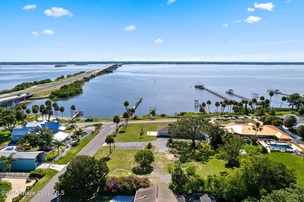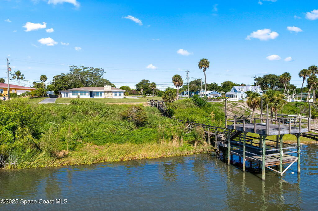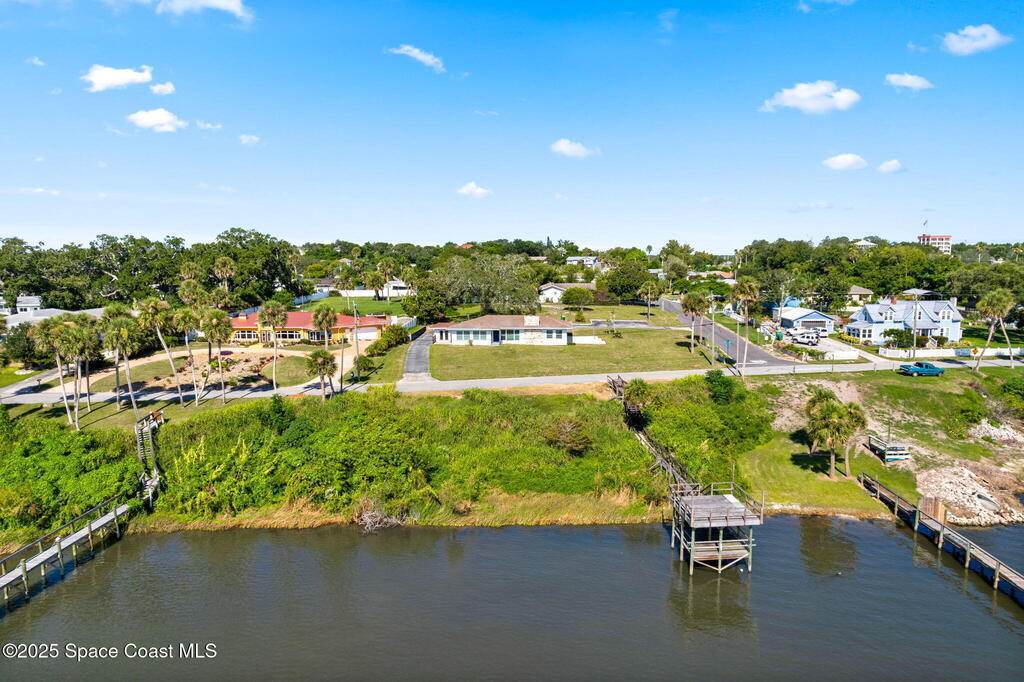 Enjoy an exceptional elevation above the Intracoastal Waterway (Indian River) with sweeping views. This larger home offers a boat dock and observation deck. This property has a whopping 1.12 acres offering nearly limitless potential for additional dwellings, guest house, or expanded living. Situated on a corner lot at desirable Indian River Drive and Sunset Terrace. The home has panoramic views from 2 front bedrooms and living room with fireplace. The in-law/guest room has an additional kitchen and one bonus room has laundry access. This property has so much potential to renovate or build your dream home on a desirable lot. The lot size itself offers the potential for subdivision. Easy access to FL528 to Orlando or the beaches and Port Canaveral just minutes away. AC 2023, HW Heater 2005, modern electrical panel.